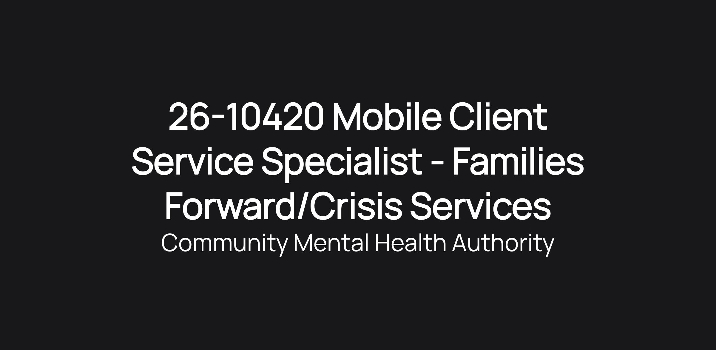 26-10420 Mobile Client Service Specialist - Families Forward/Crisis Services
