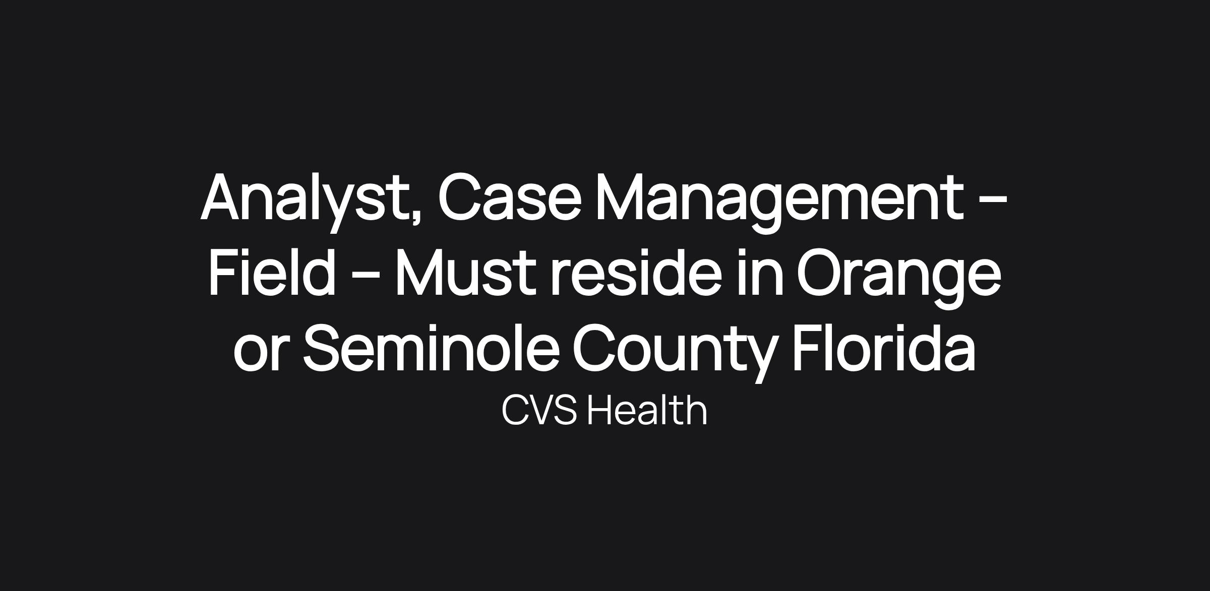 Analyst, Case Management – Field – Must reside in Orange or Seminole County Florida