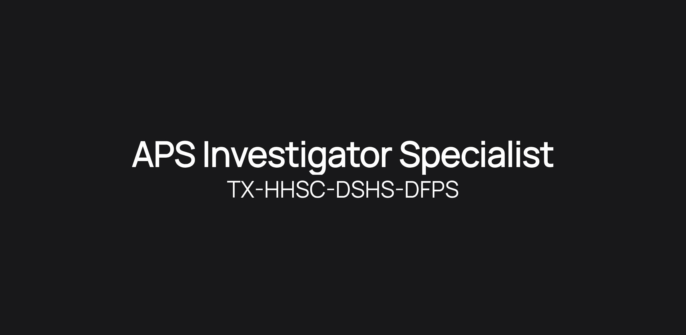 Adult Protective Services Investigator Specialist IV: An accredited Bachelor's degree OR accredited Associate's degree plus two (2) years of relevant work experience OR 60 accredited college credit hours plus two (2) years relevant work experience OR 90 accredited college credit hours plus one (1) year of relevant work experience. Examples of relevant work experience in social, human, or protective services include paid or volunteer work within social service agencies or communities providing services to families or other at-risk populations. Employed as an Adult Protective Services Investigator Specialist III for 24 months AND have received Senior Adult Protective Services Investigator Specialist Certification OR currently employed as an Adult Protective Services Investigator Specialist IV in Texas Department of Family and Protective Services OR previously employed as an Adult Protective Services Investigator Specialist IV in Texas Department of Family and Protective Services.