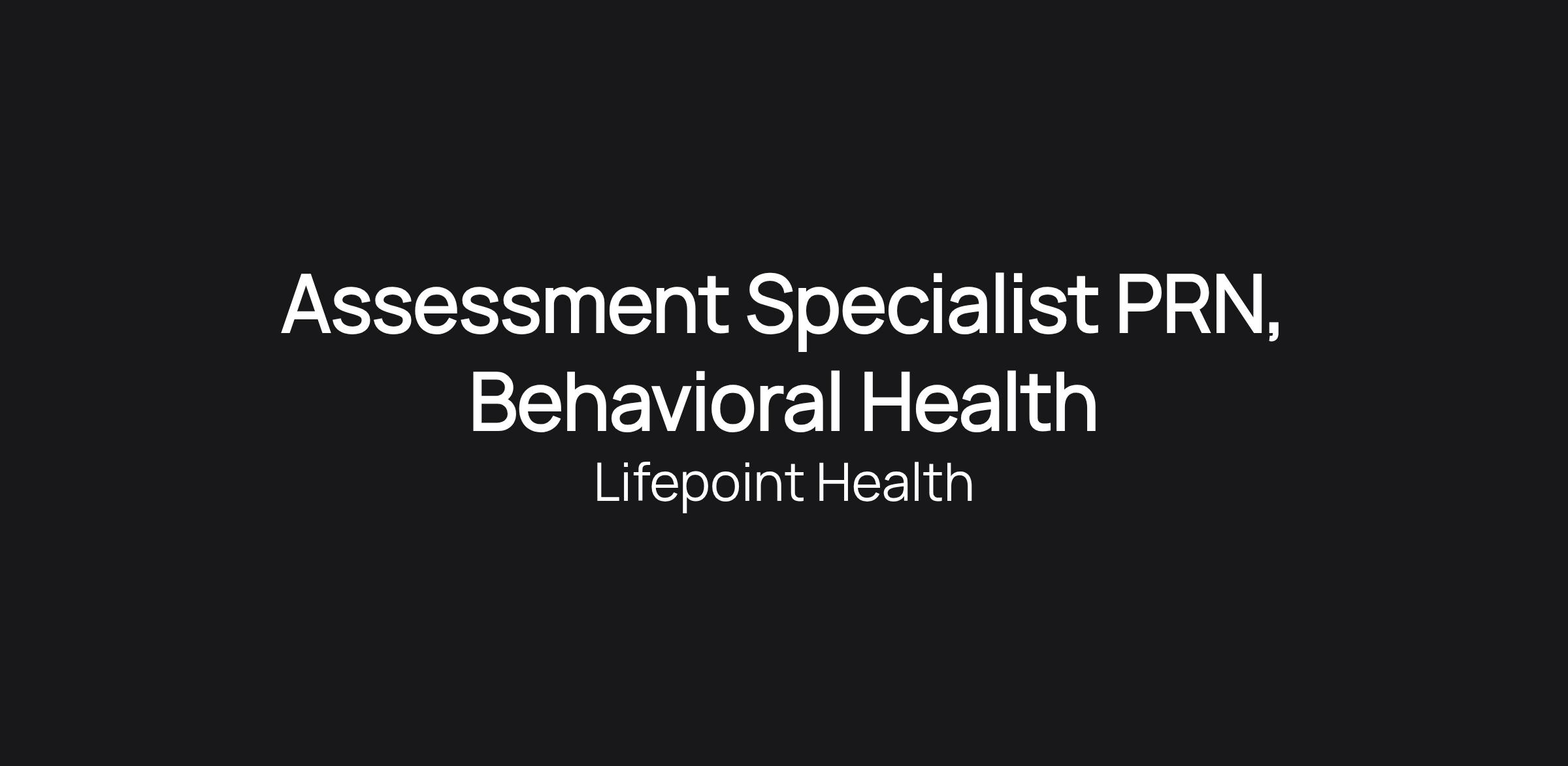 Assessment Specialist PRN, Behavioral Health
