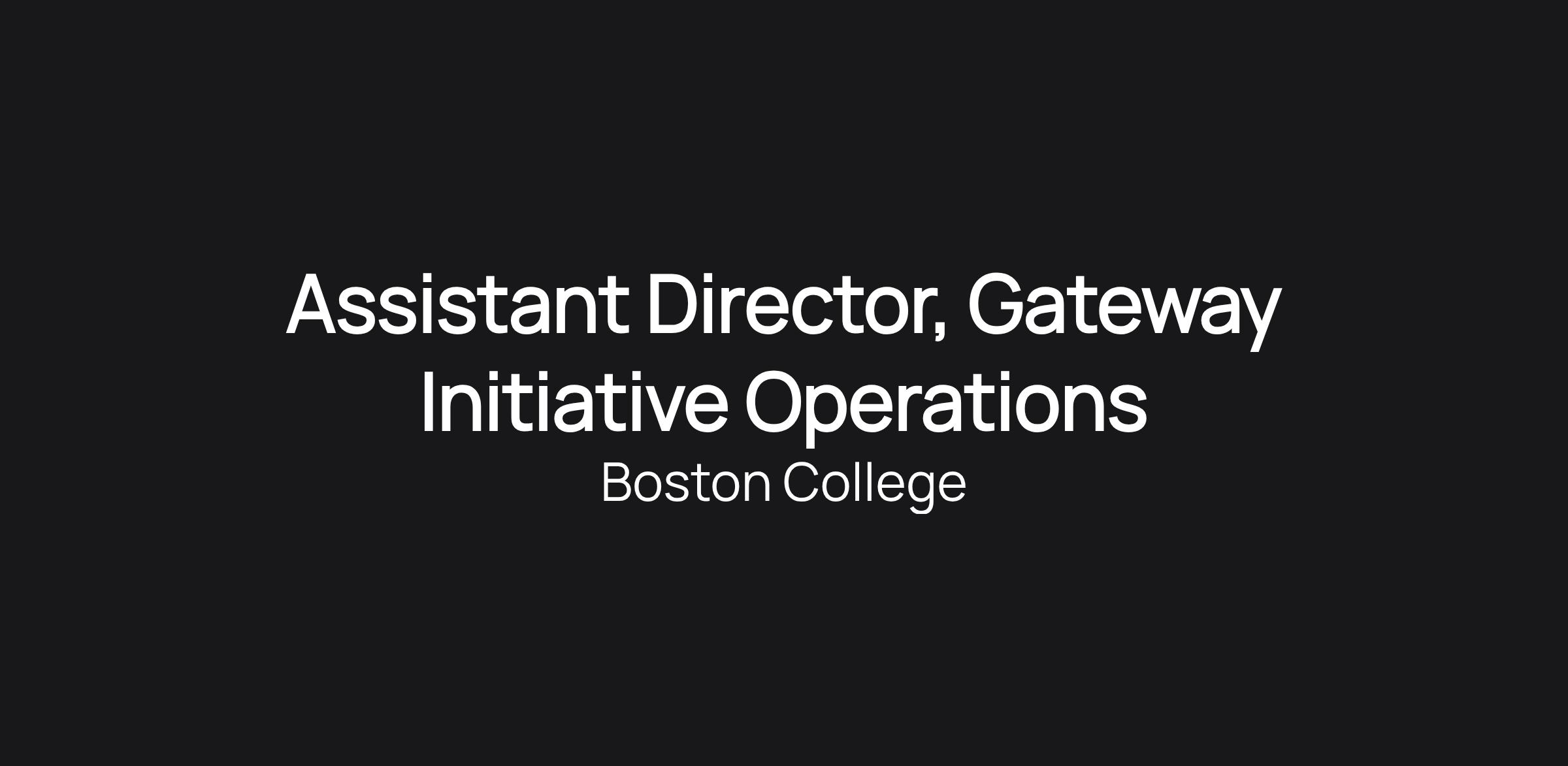 Assistant Director, Gateway Initiative Operations