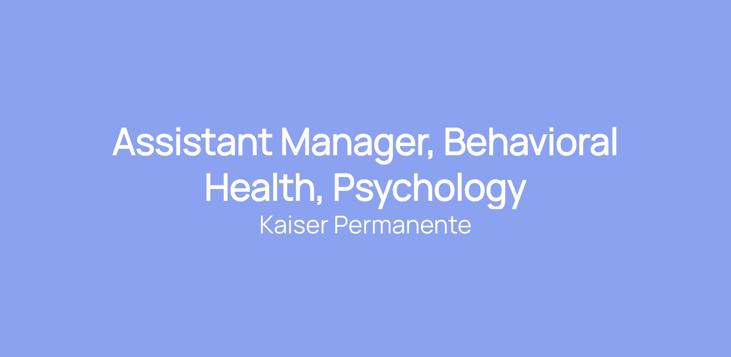 Assistant Manager, Behavioral Health, Psychology