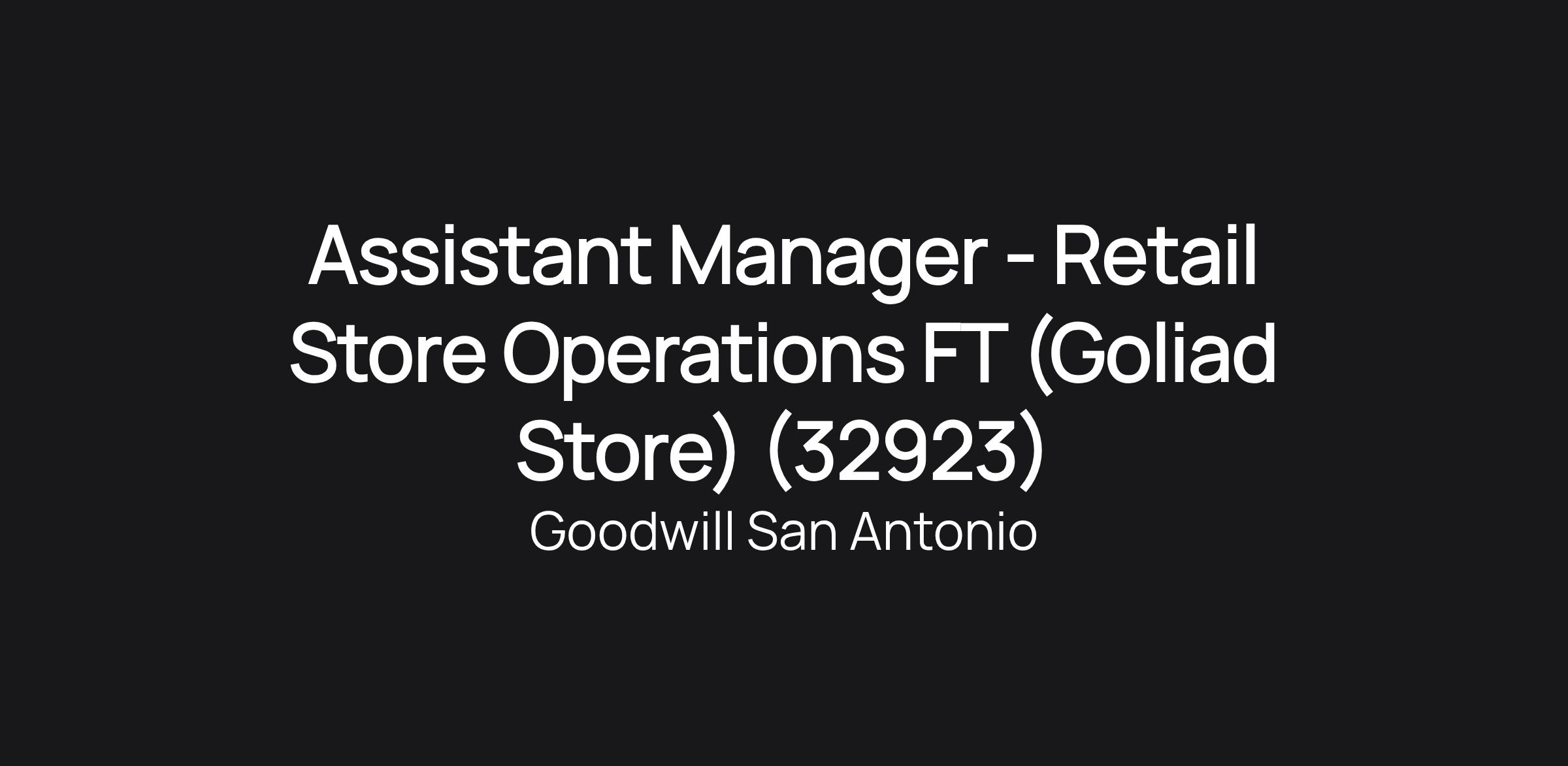 Assistant Manager - Retail Store Operations FT (Goliad Store) (32923)