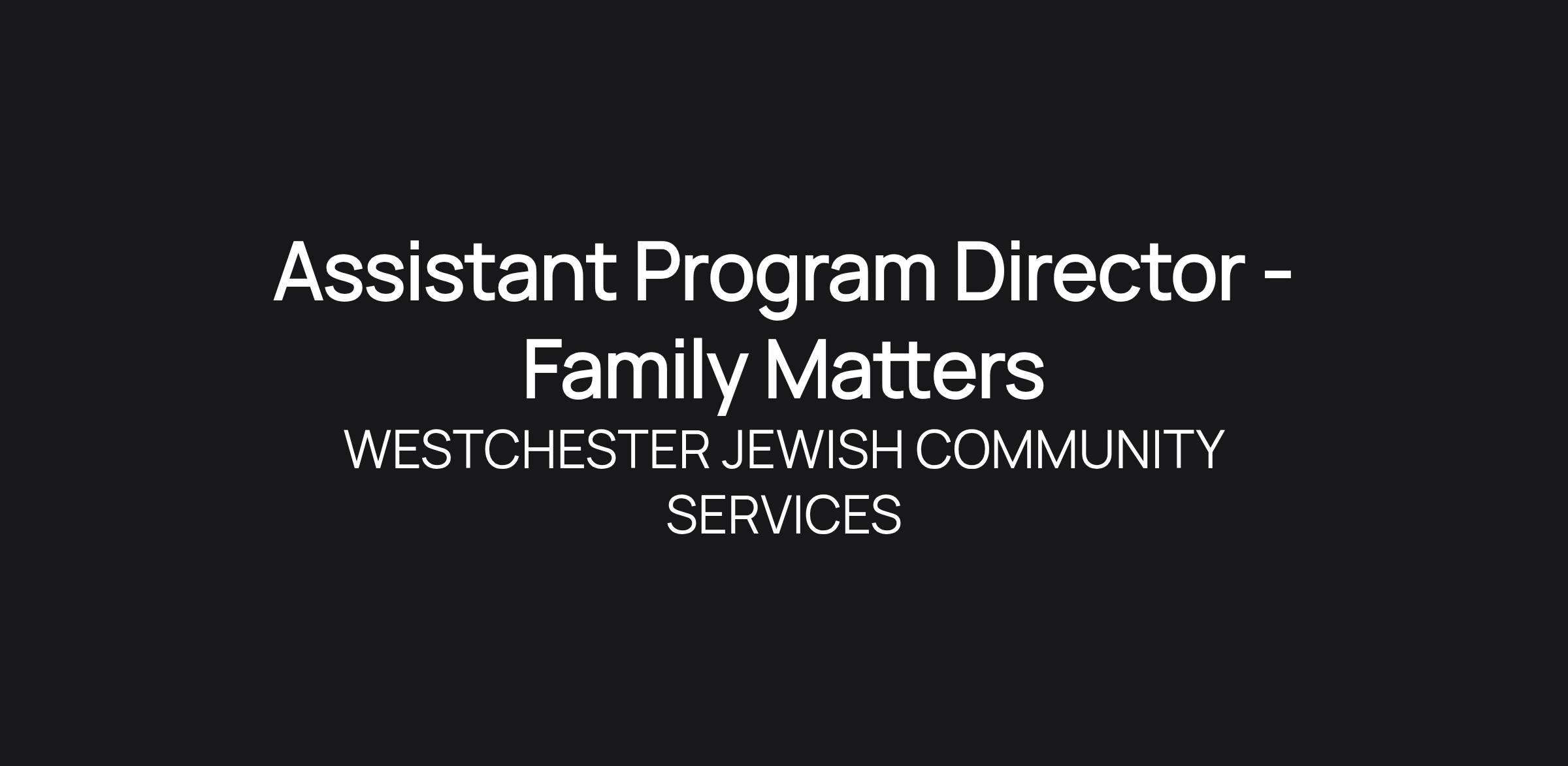 Assistant Program Director - Family Matters