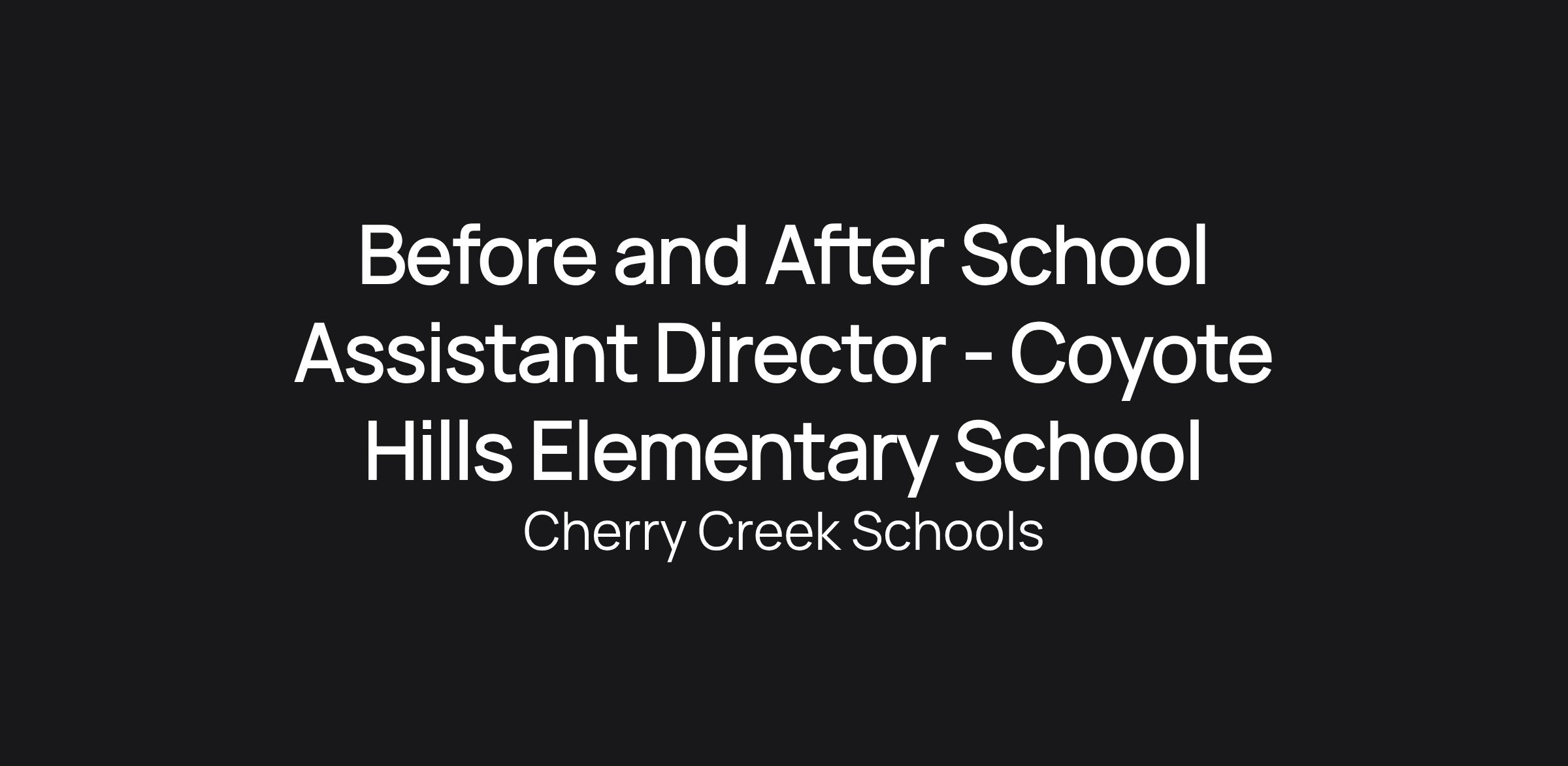 Before and After School Assistant Director - Coyote Hills Elementary School