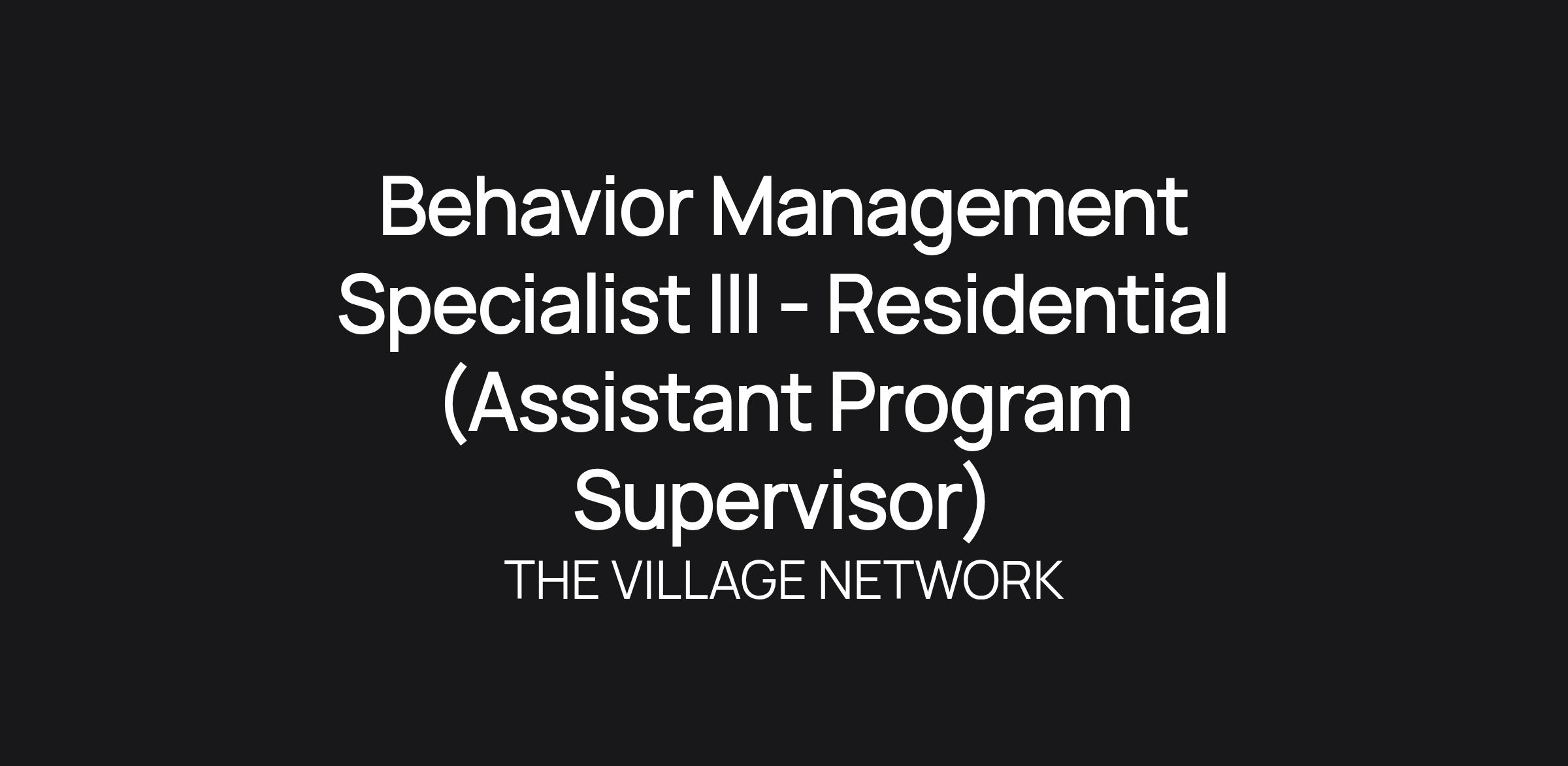 Summary, Job Description, and QualificationsJob Title:                                Behavioral Management Specialist III - Residential (Assistant Program Supervisor)