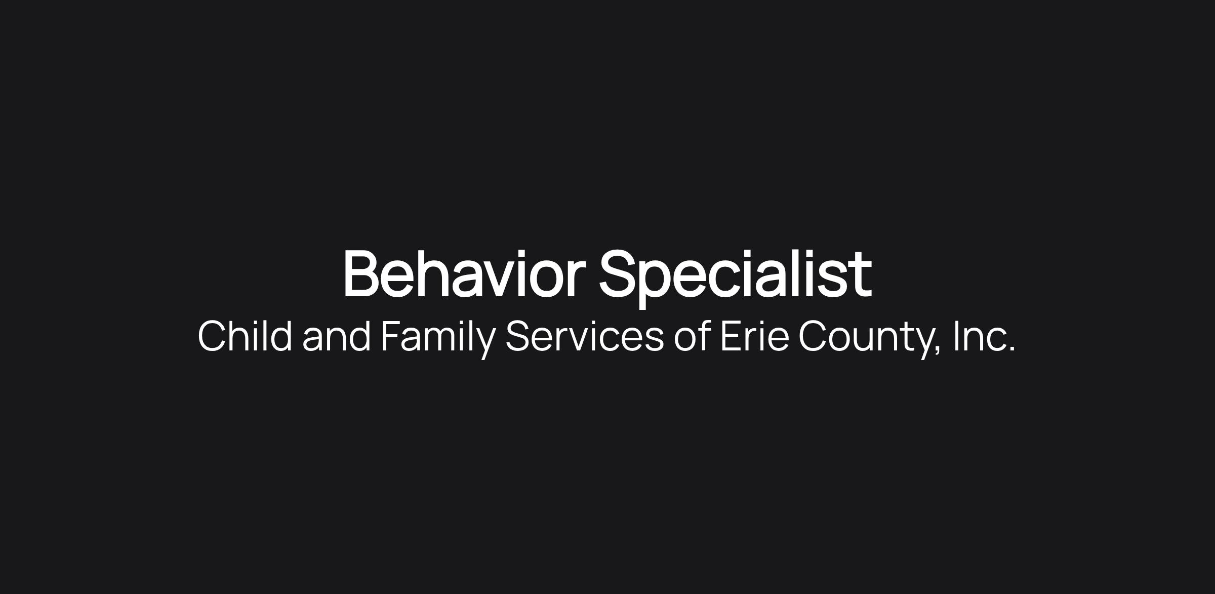 The Behavior Specialist will provide therapeutic behavioral interventions, counseling and mental health services to youth and families. Mental health assessment and counseling may be provided in the home or in the community for a youth and their family.