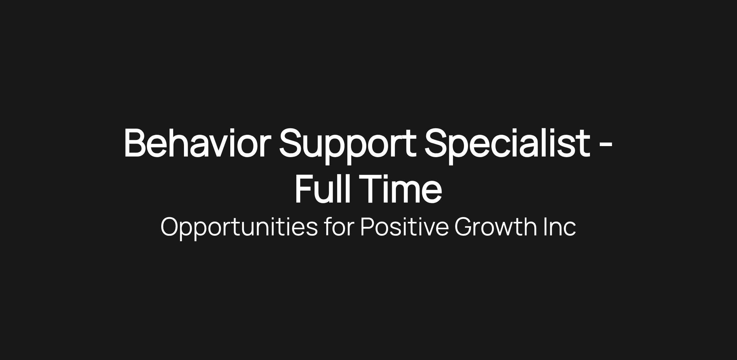 Behavior Support Specialist - Full Time