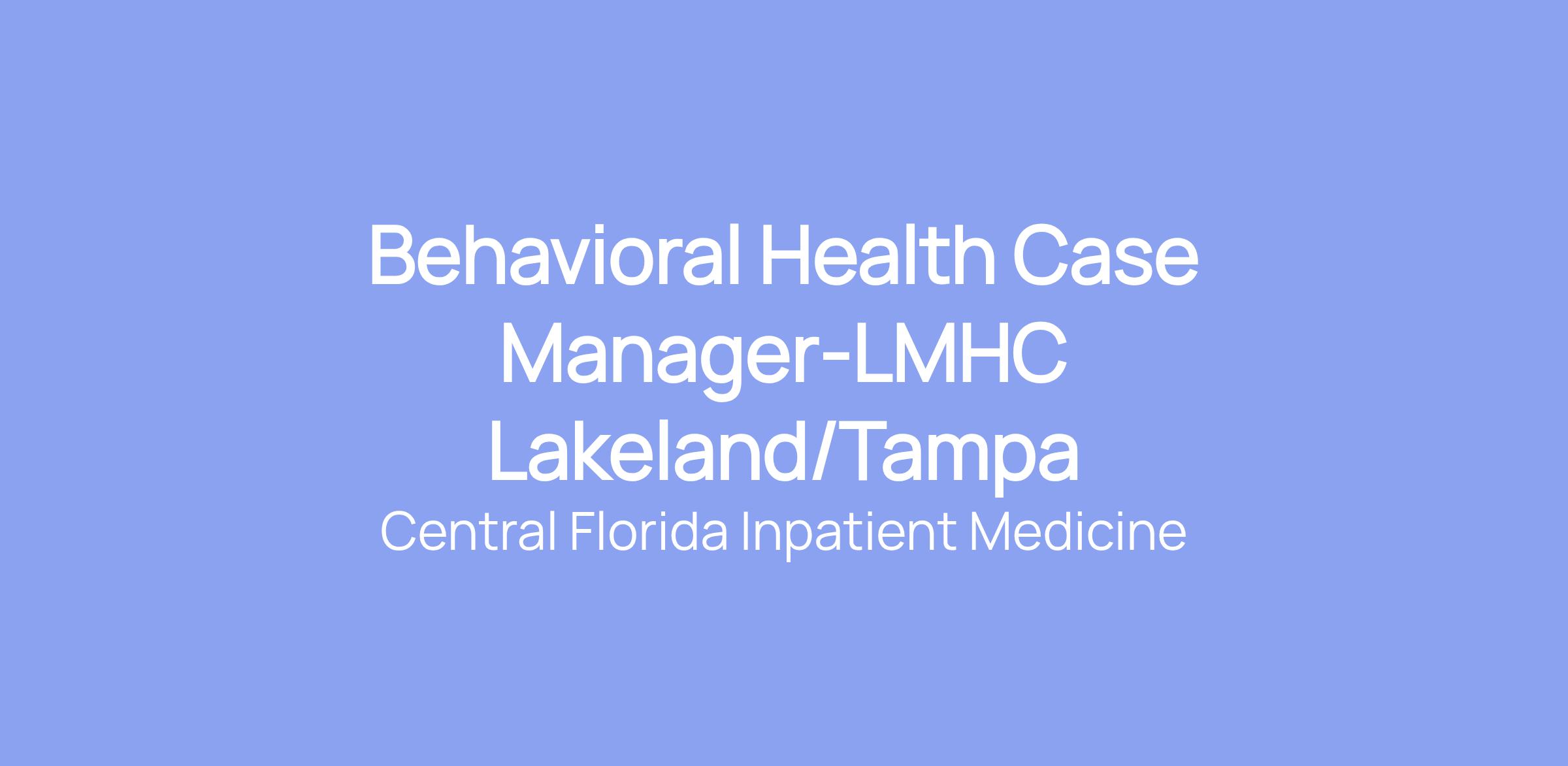 Behavioral Health Case Manager-LMHC Lakeland/Tampa