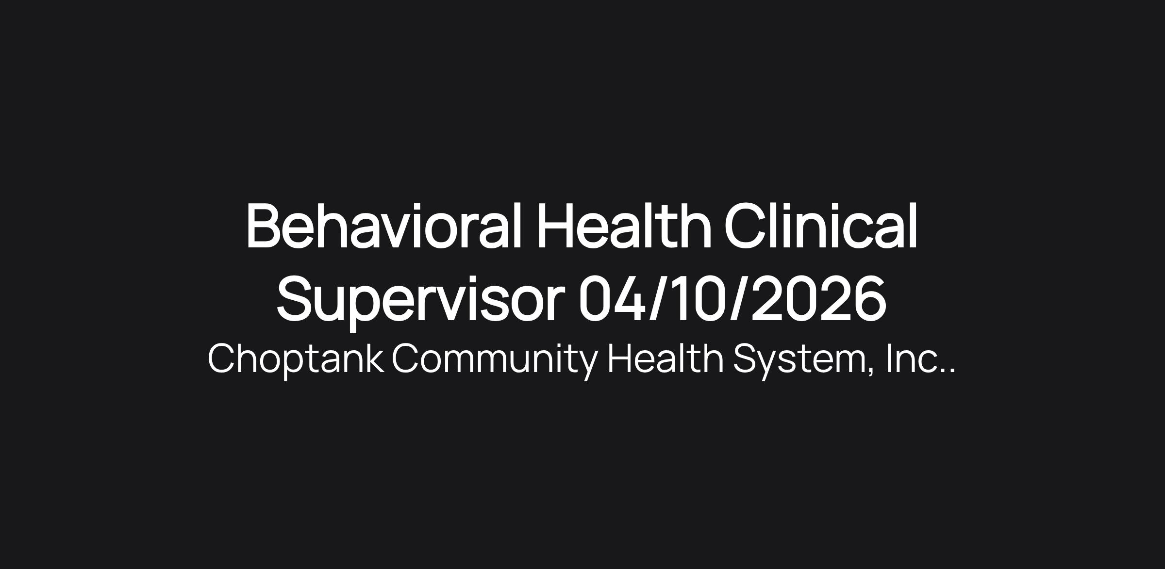Behavioral Health Clinical Supervisor 04/10/2026