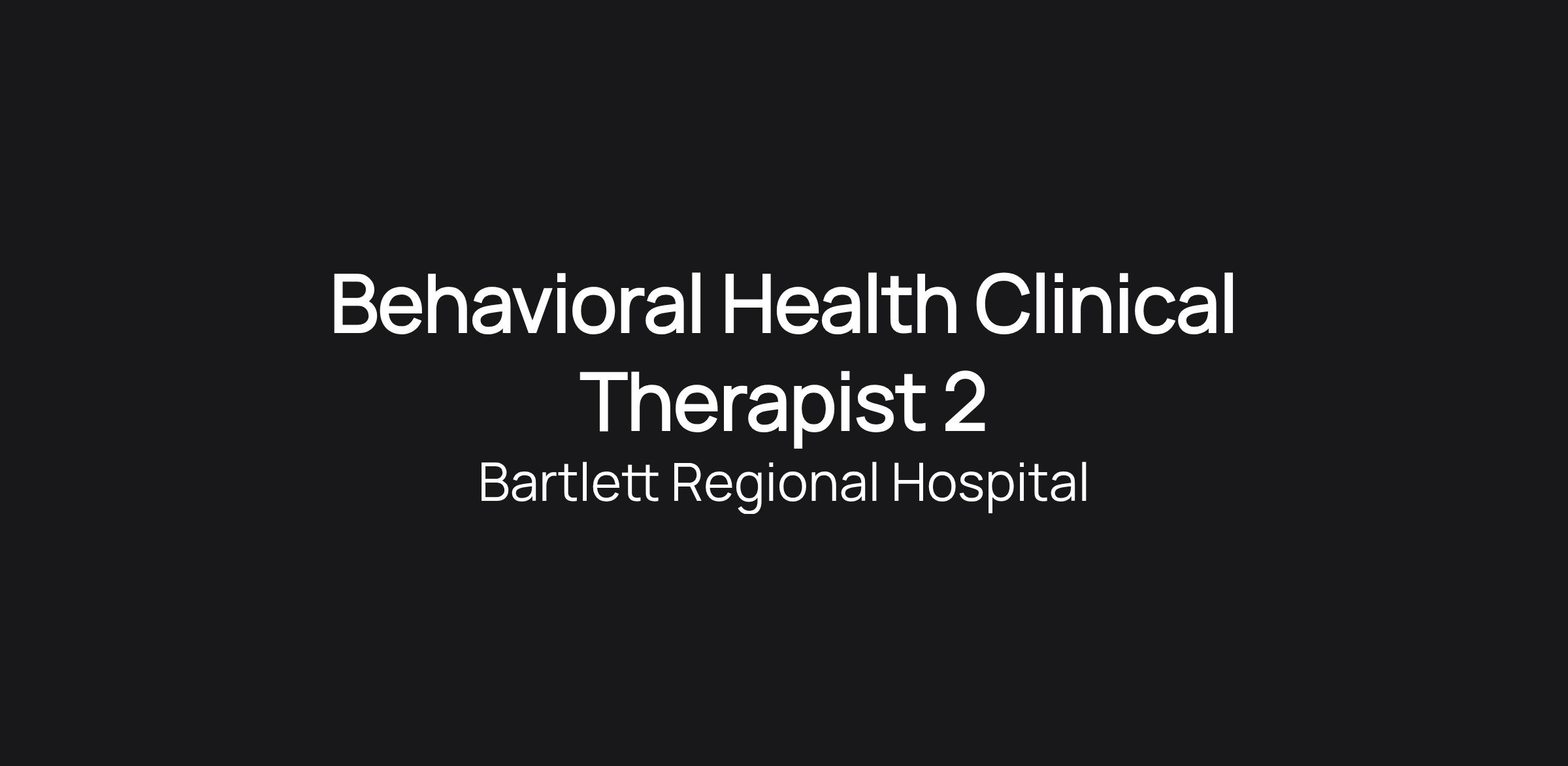 Bartlett Regional Hospital is searching for a Behavioral Health Clinical Therapist 2 to join our Bartlett Outpatient Psychiatric Services (BOPS) team!