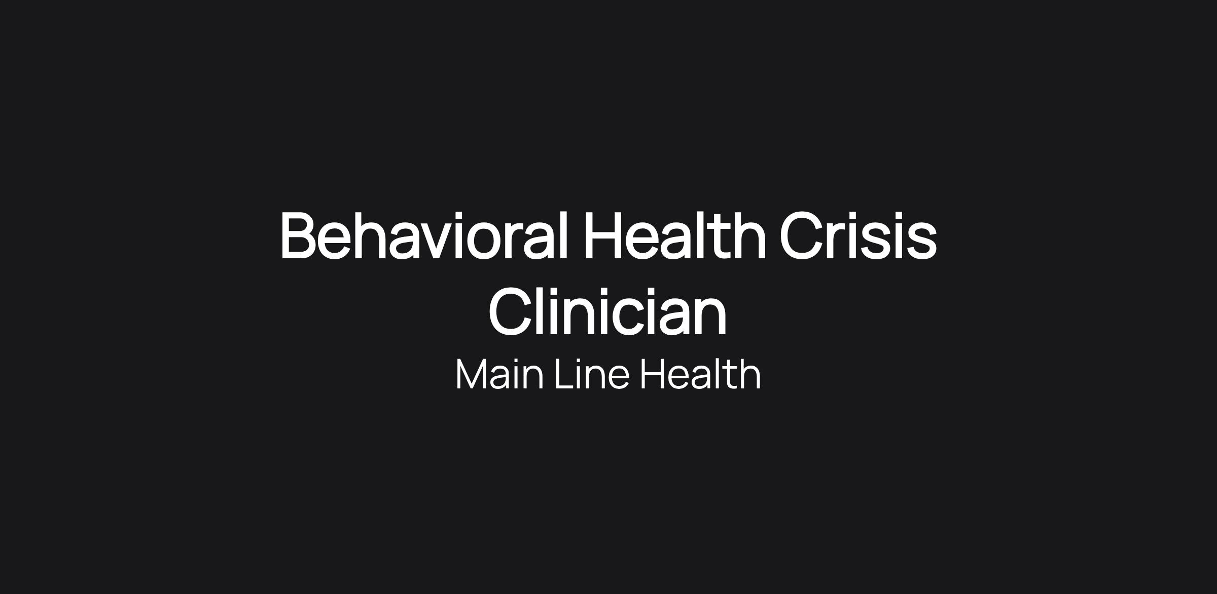 Could you be our next Behavioral Health Crisis Clinician at Main Line Health?