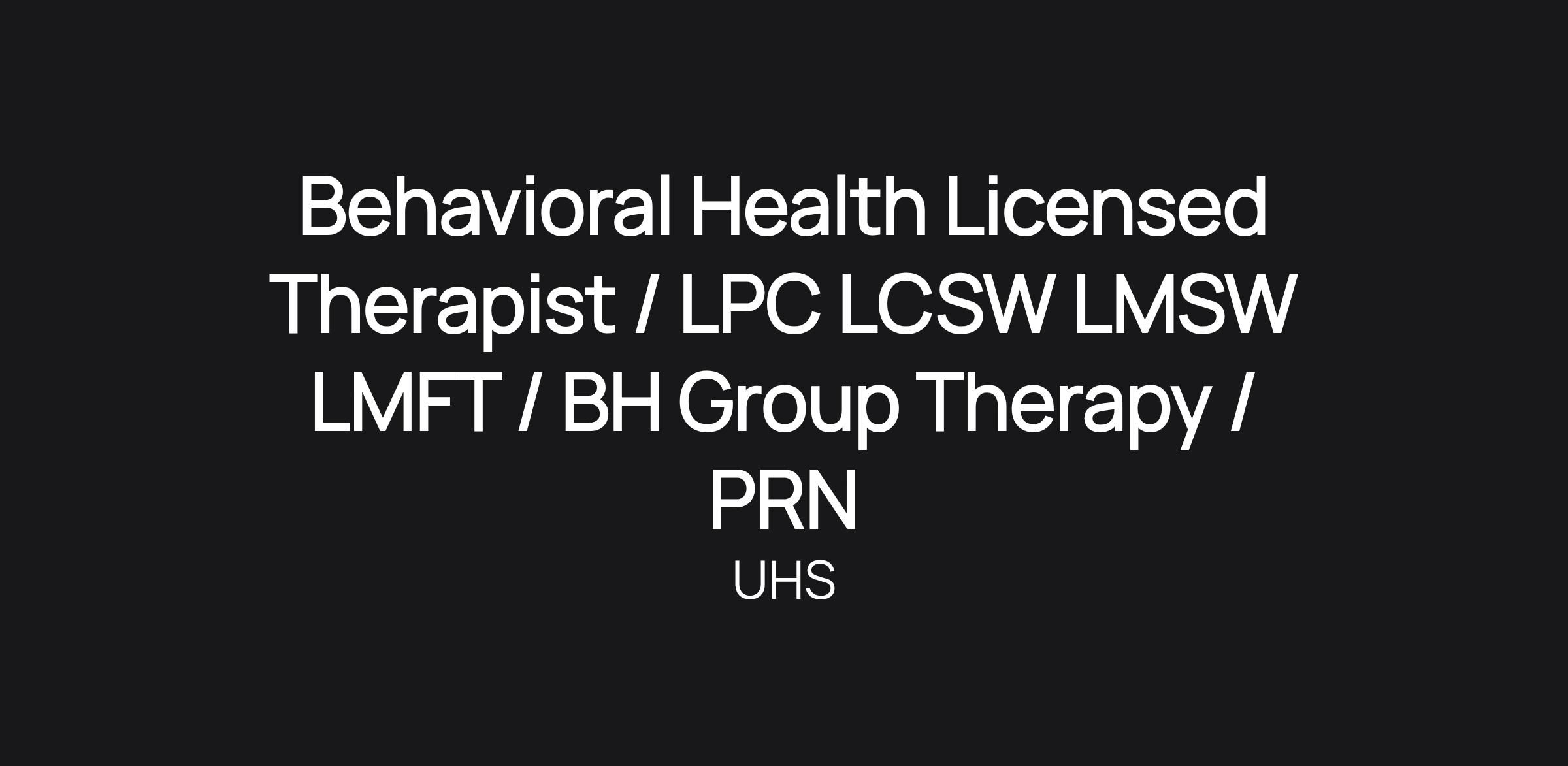 Behavioral Health Licensed Therapist / LPC LCSW LMSW LMFT / BH Group Therapy / PRN