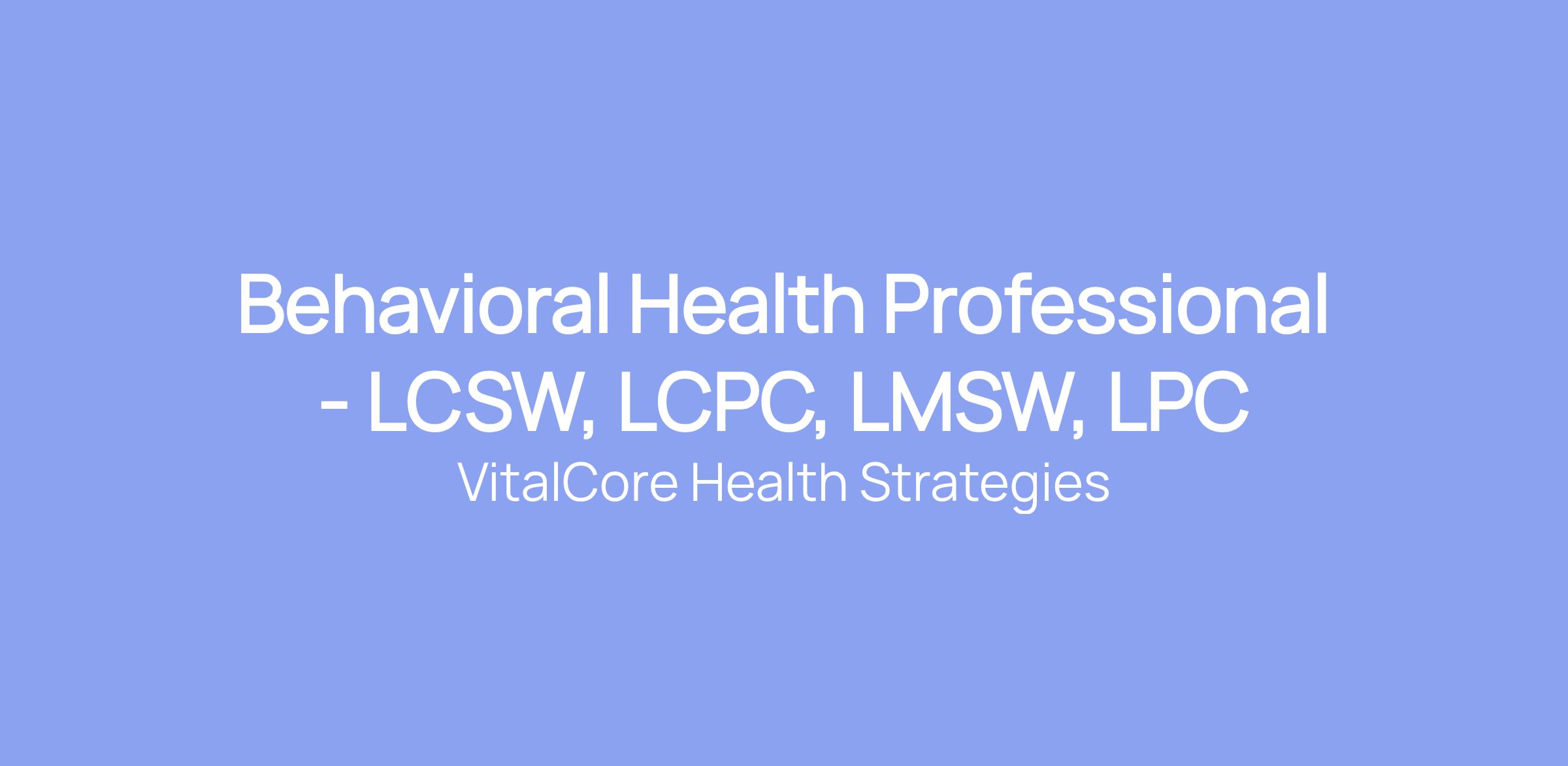 Behavioral Health Professional - LCSW, LCPC, LMSW, LPC