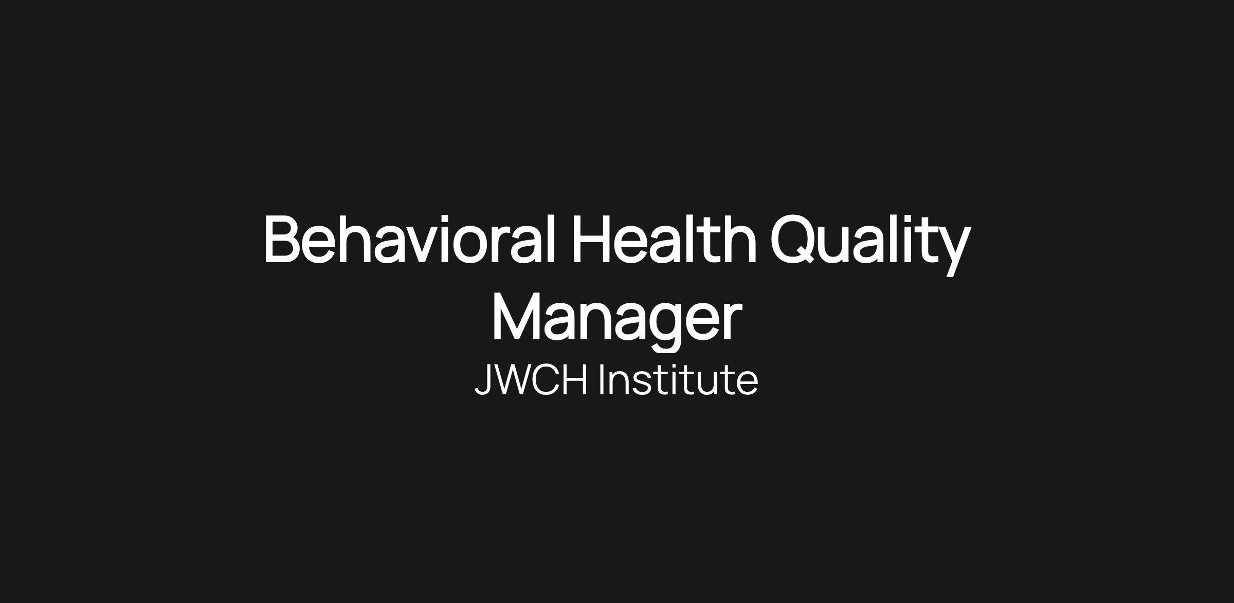 Behavioral Health Quality Manager