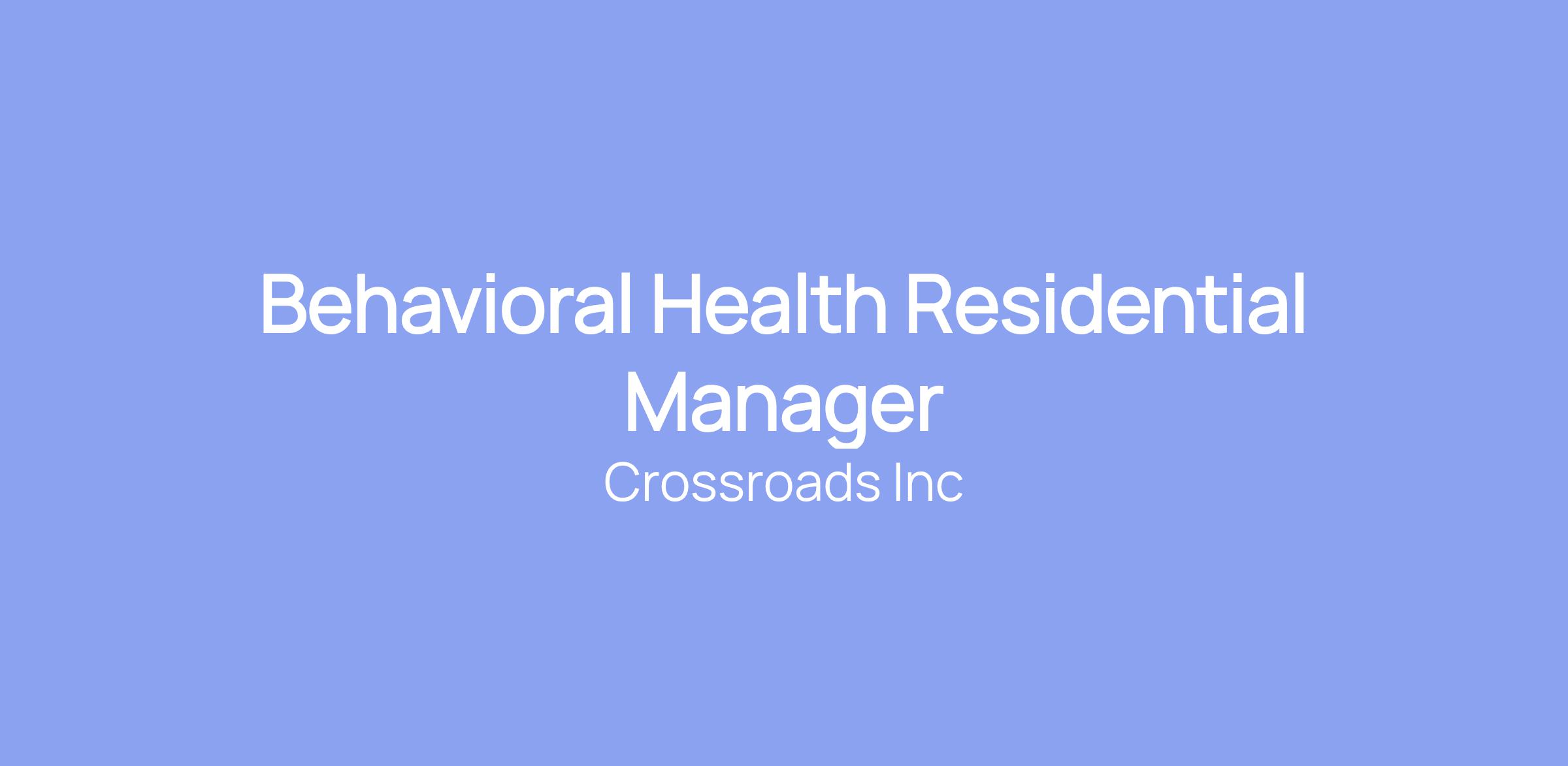 Behavioral Health Residential Manager