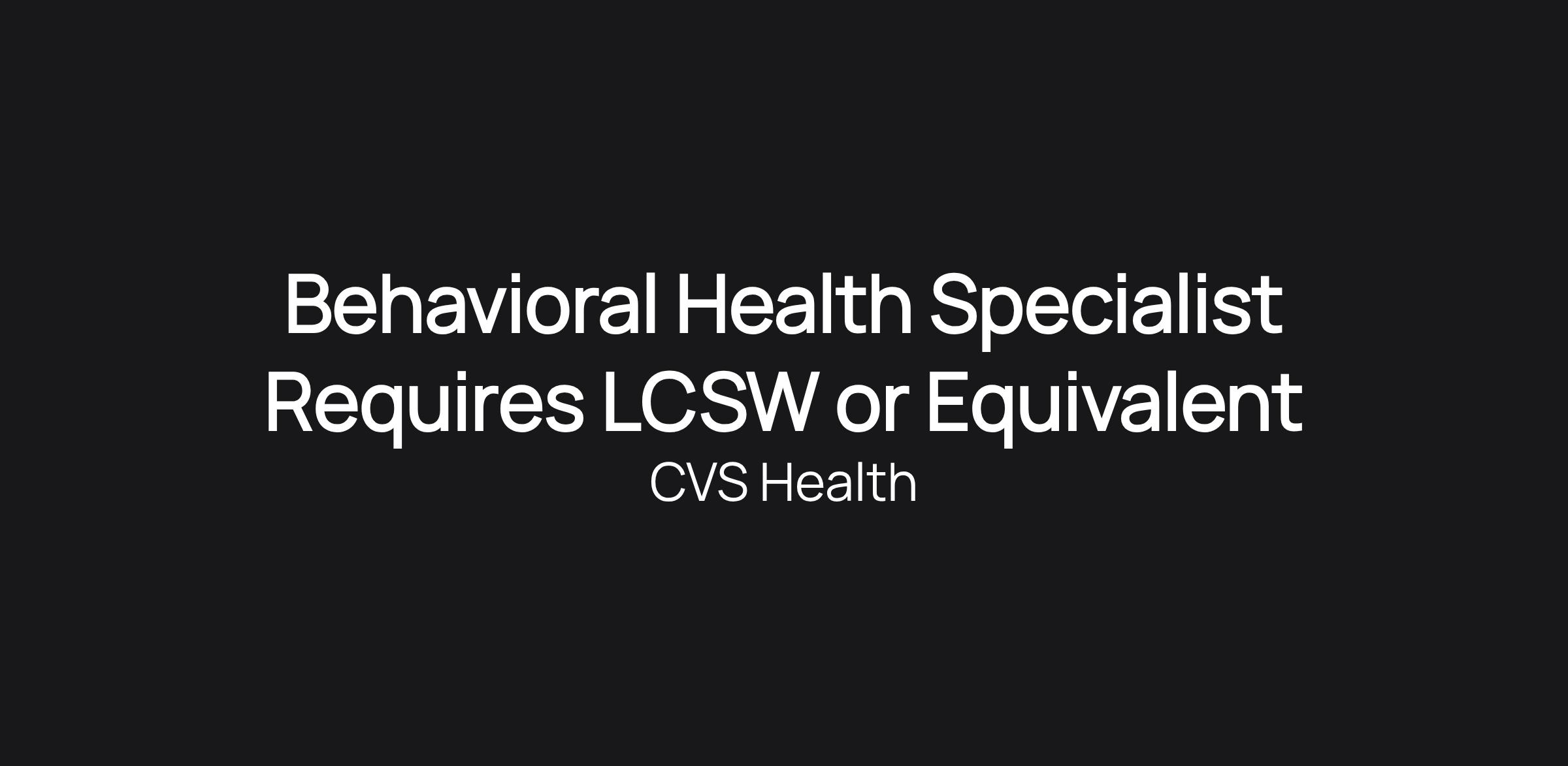 Title: Behavioral Health Specialist - Requires LCSW or Equivalent