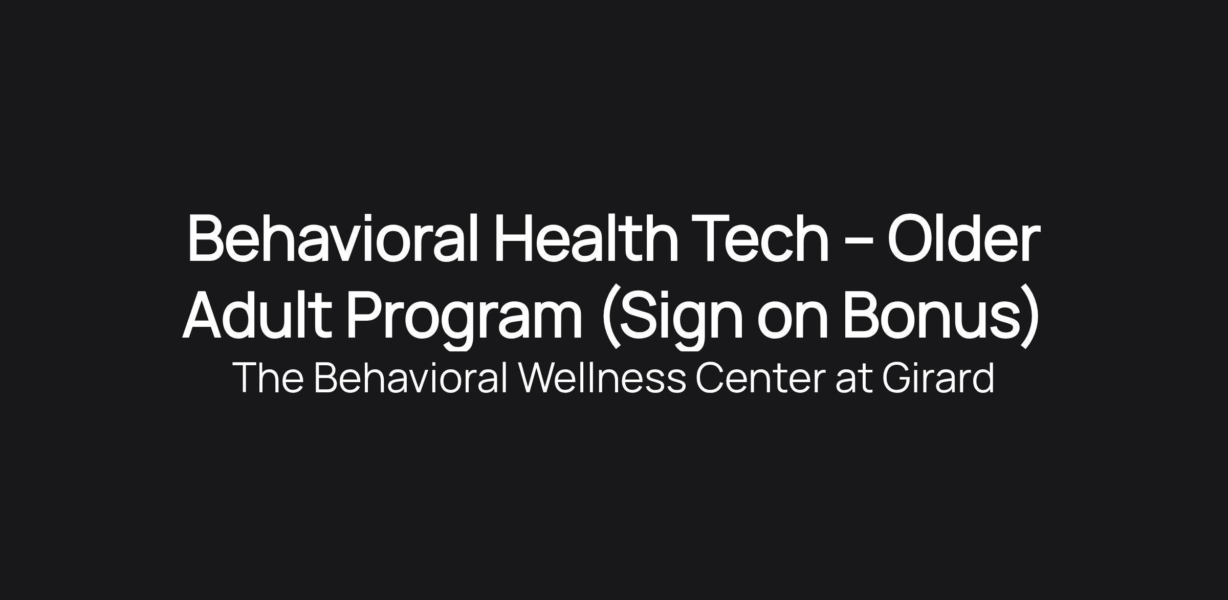Behavioral Health Tech – Older Adult Program (Sign on Bonus)