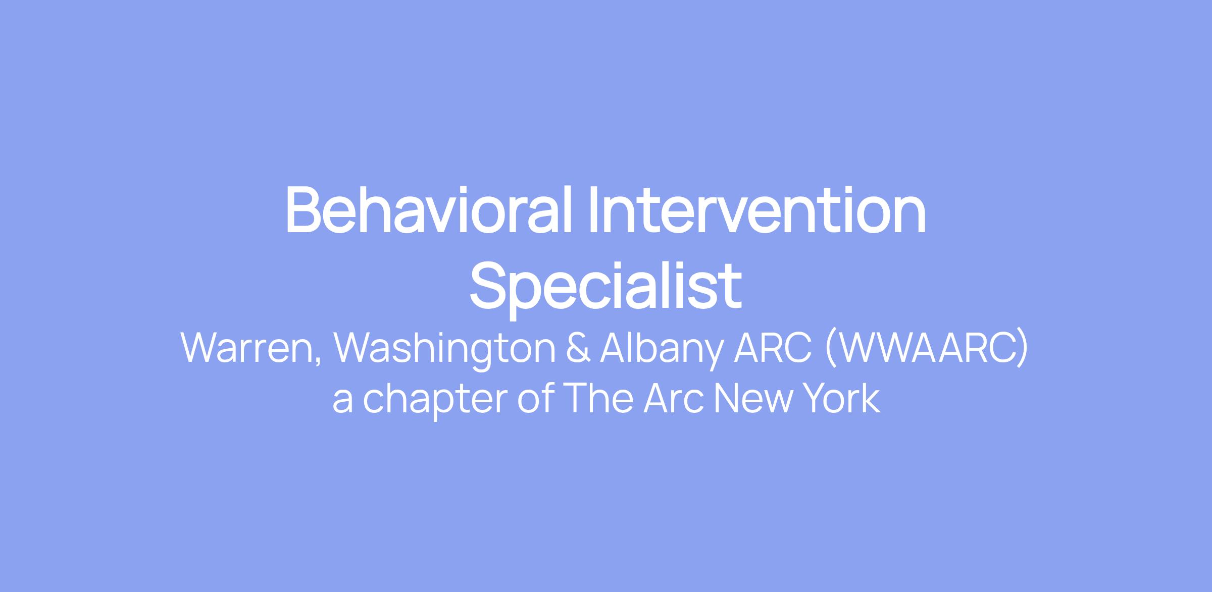 The Behavior Intervention Specialist (BIS) will develop and implement behavior support plans (BSP) with a person-centered, strength-based approach in accordance with NYS OPWDD regulatory requirements and the agency’s mission.  (The BIS In-Training assists with the development and implementation of BSPs.)  The BIS/BIS In-Training will train staff regarding behavior support plans and monitor the effectiveness of the BSP through data analysis and observation. Some remote work is possible but BISs and BISs In-Training are expected to attend meetings and visit WWAARC programs on their caseload.