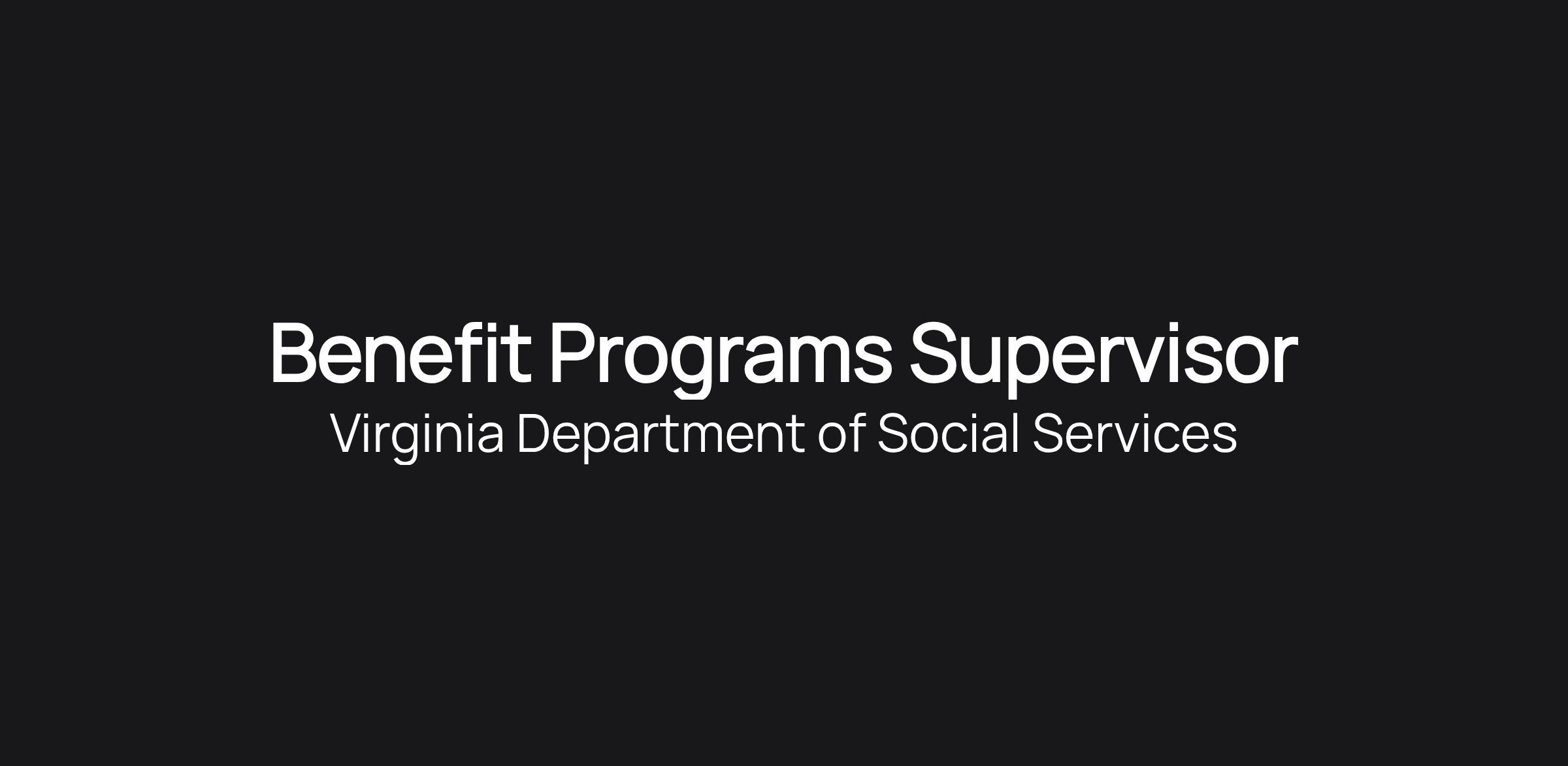 Title Description- This is the supervisory level in the occupational group. Employees supervise Specialists who determine eligibility for government assistance programs and a variety of other staff. Employees train, lead, and develop staff and monitor case management services. The Benefit Programs Supervisor is distinguished from the Benefit Programs Manager by the latter’s responsibilities for supervising Supervisors and managing program performance.