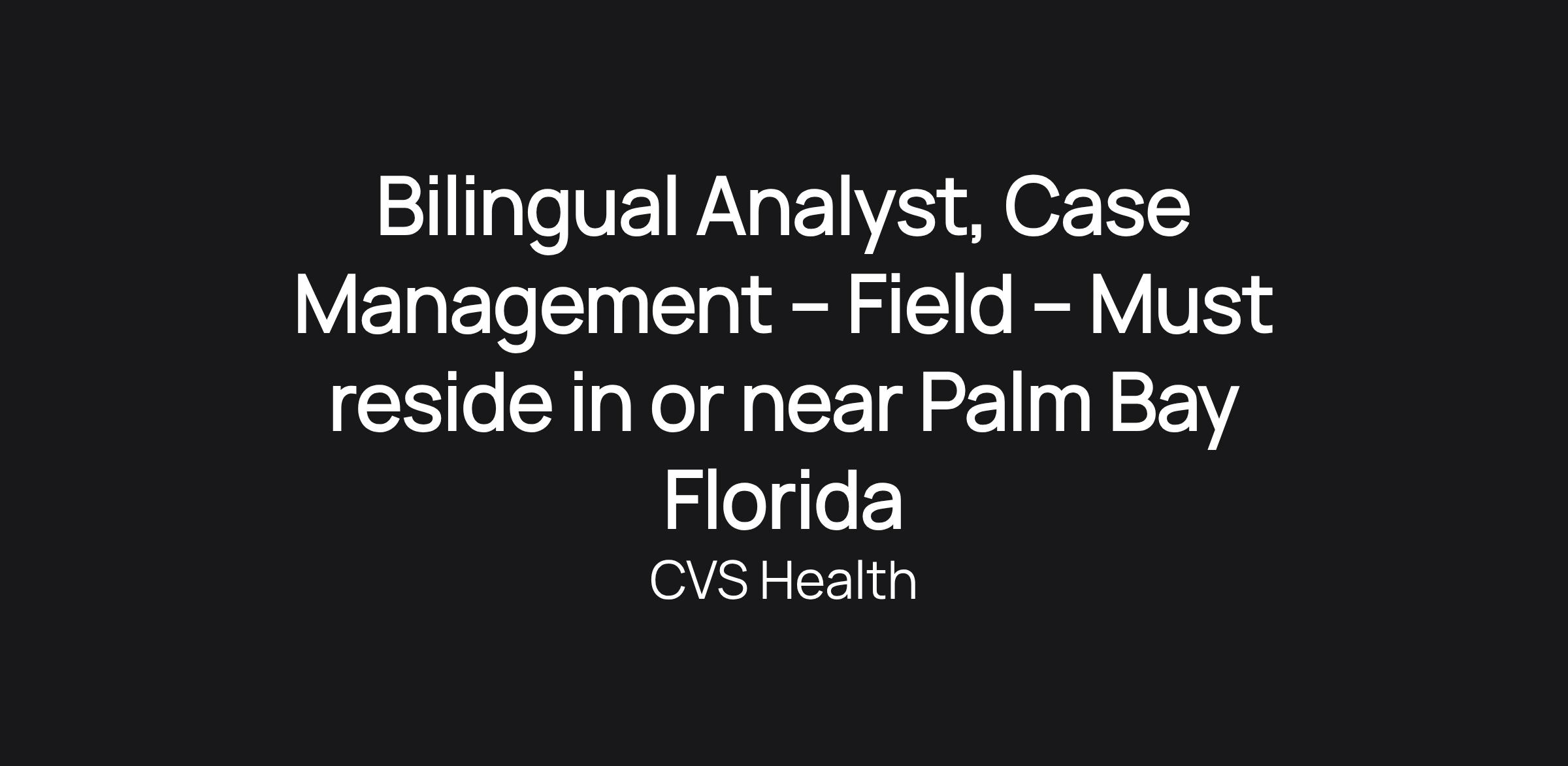 Bilingual Analyst, Case Management – Field – Must reside in or near Palm Bay Florida