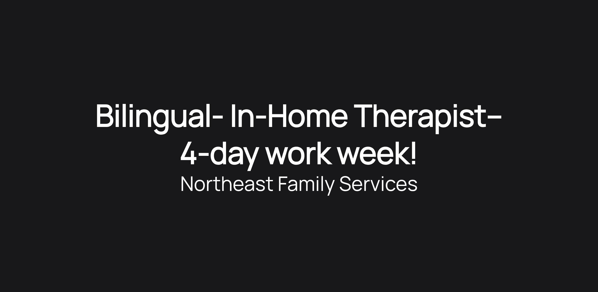 Bilingual- In-Home Therapist– 4-day work week!