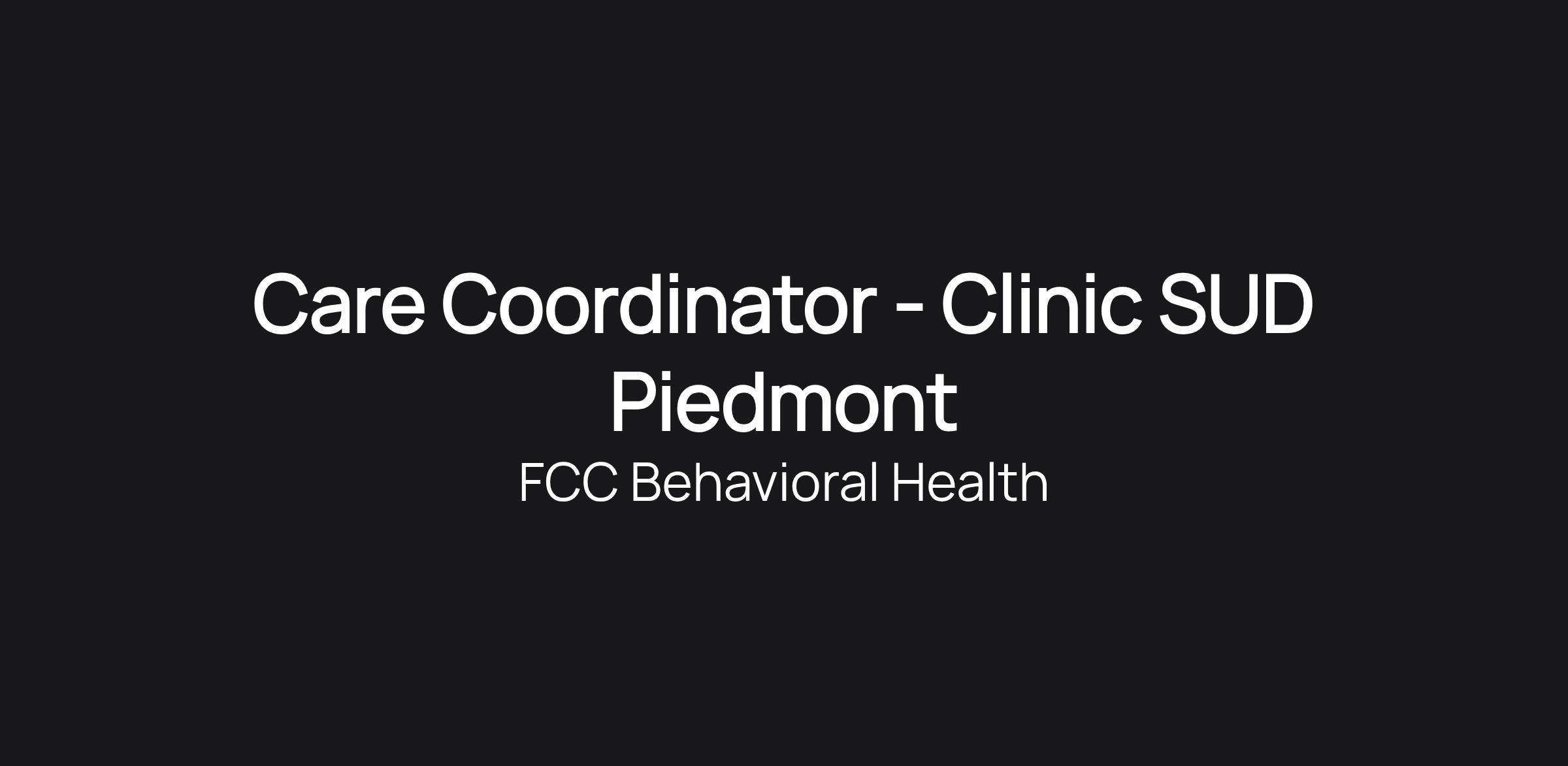 Care Coordinator - Clinic SUD Piedmont