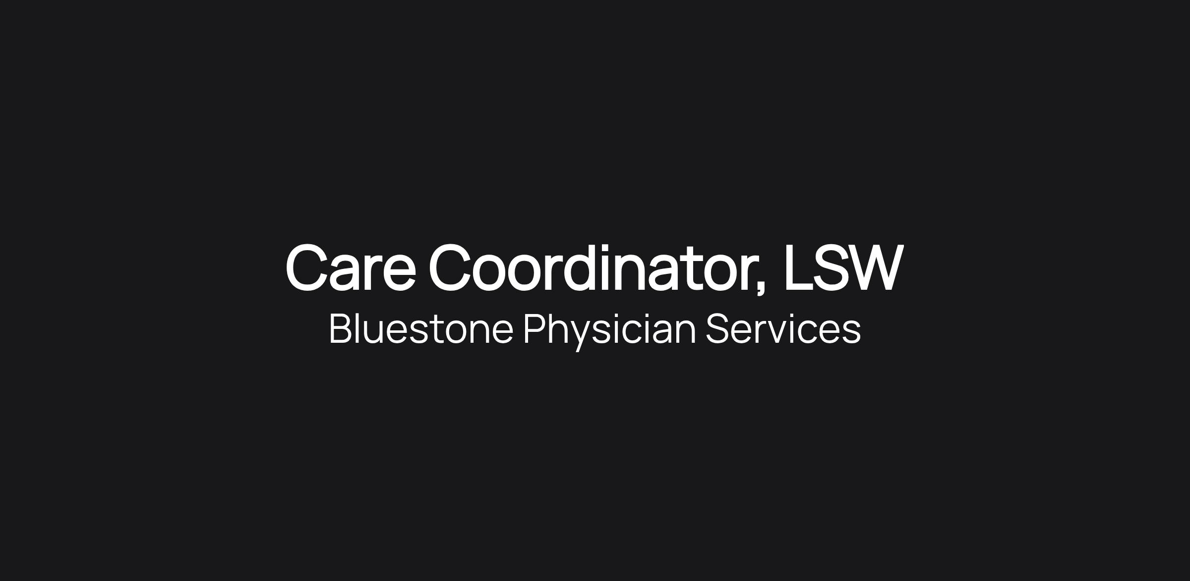 Care Coordinator, LSW