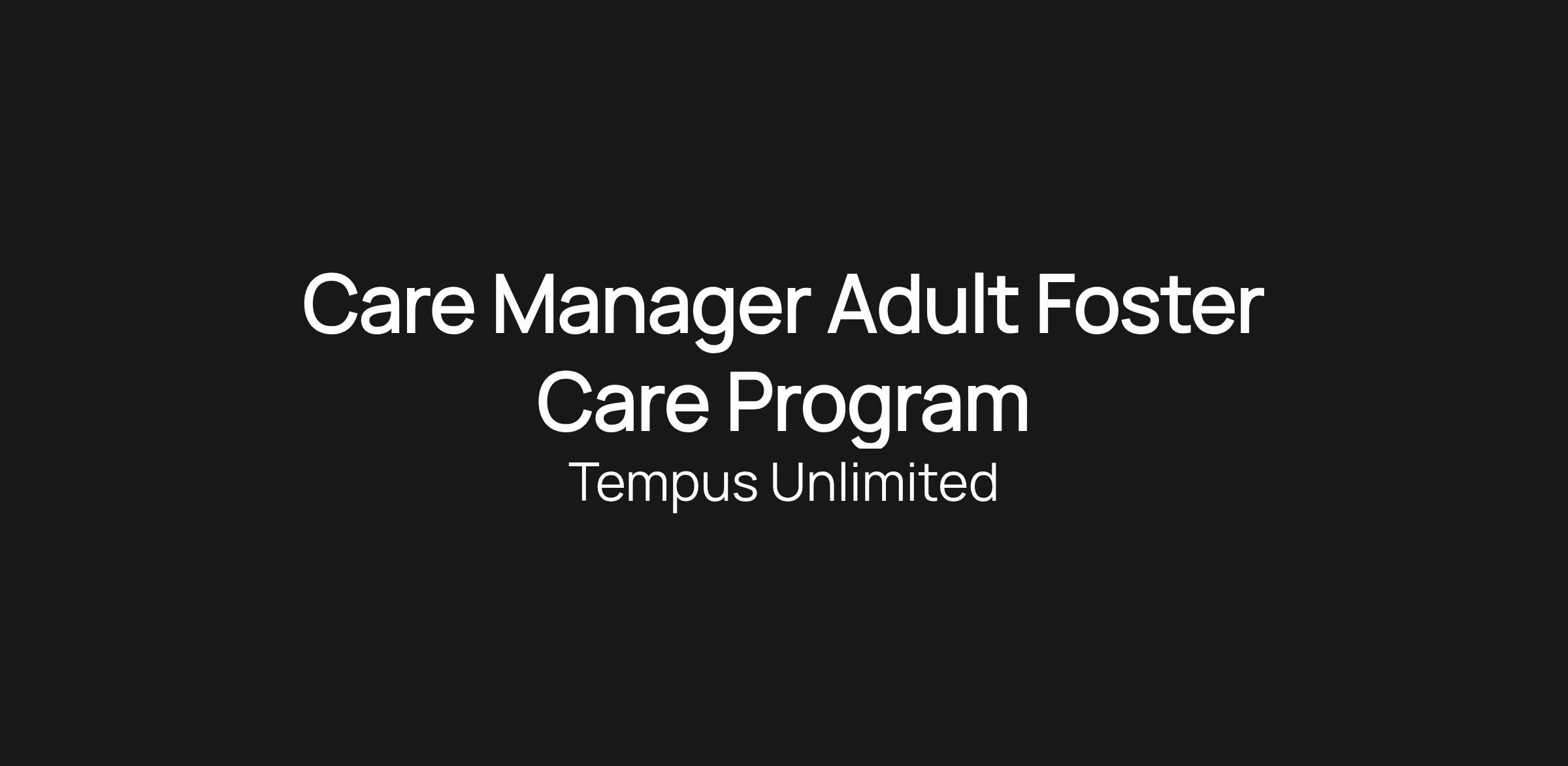 The Care Manager will work in the Adult Foster Care (AFC) department where it is a great opportunity to work in a unique program. Care Managers make a truly wonderful difference in the lives of children and adults with a wide range of disabilities.