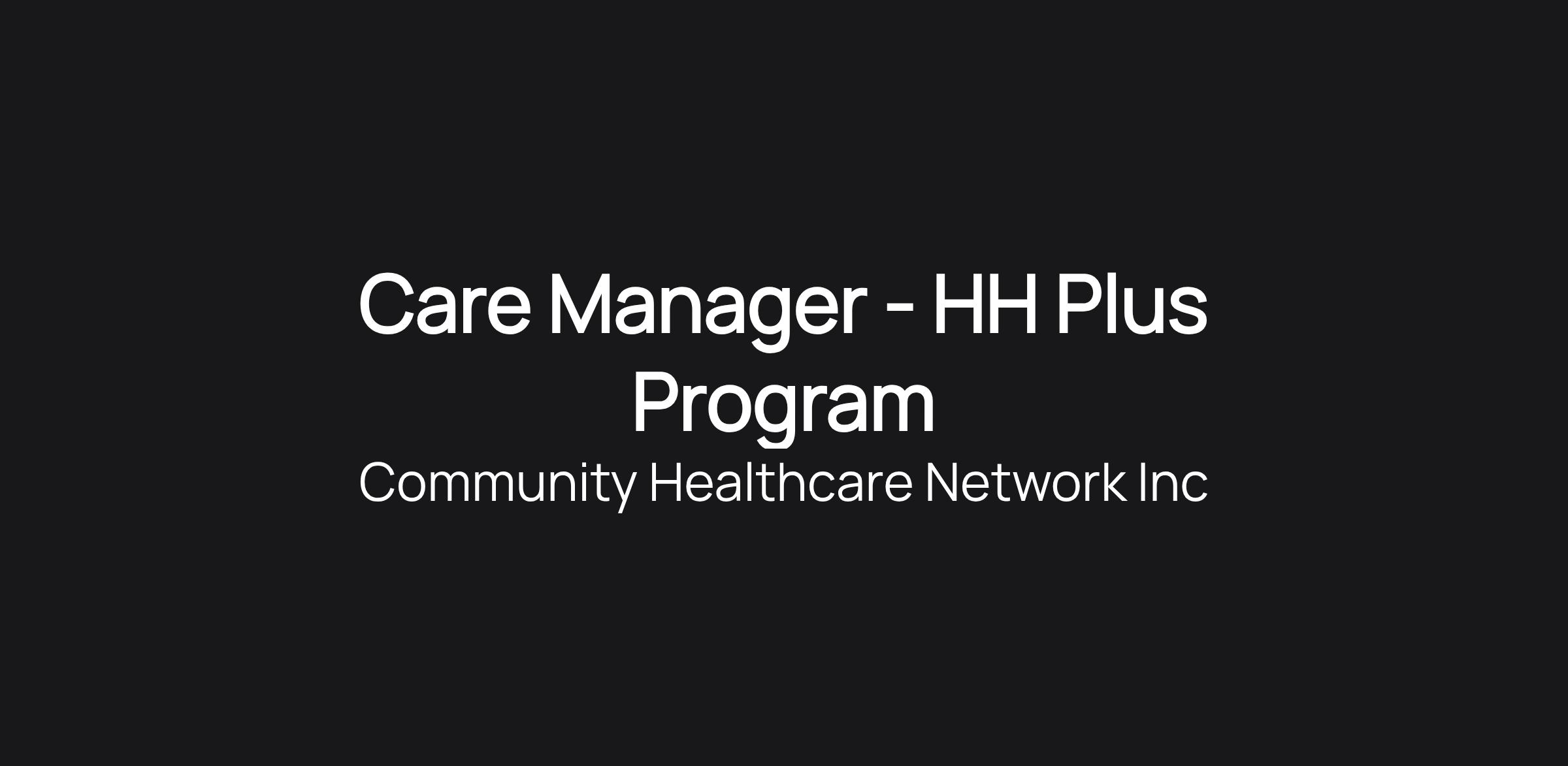 Care Manager - HH Plus Program
