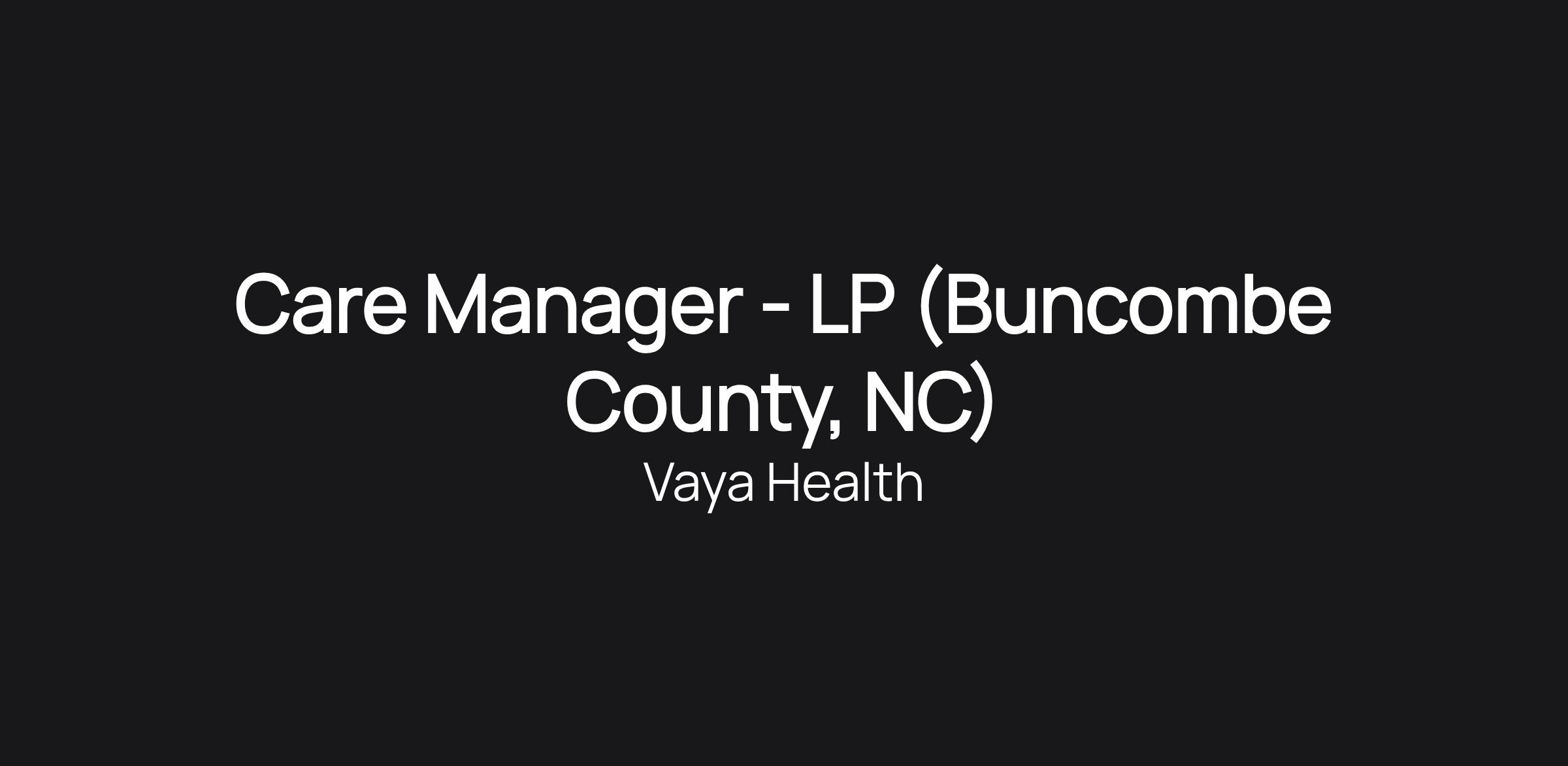 Care Manager - LP (Buncombe County, NC)