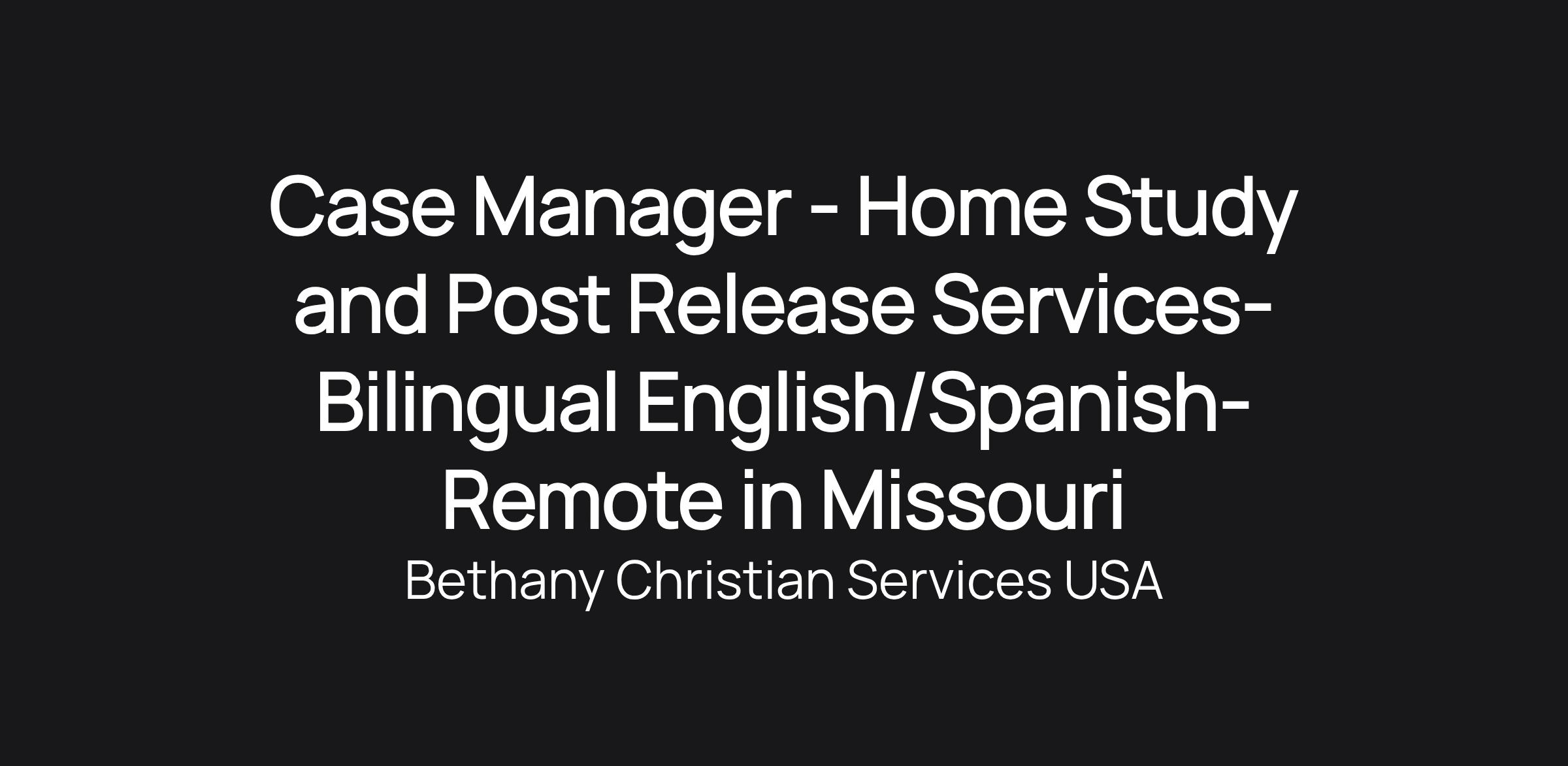 Case Manager - Home Study and Post Release Services-Bilingual English/Spanish- Remote in Missouri