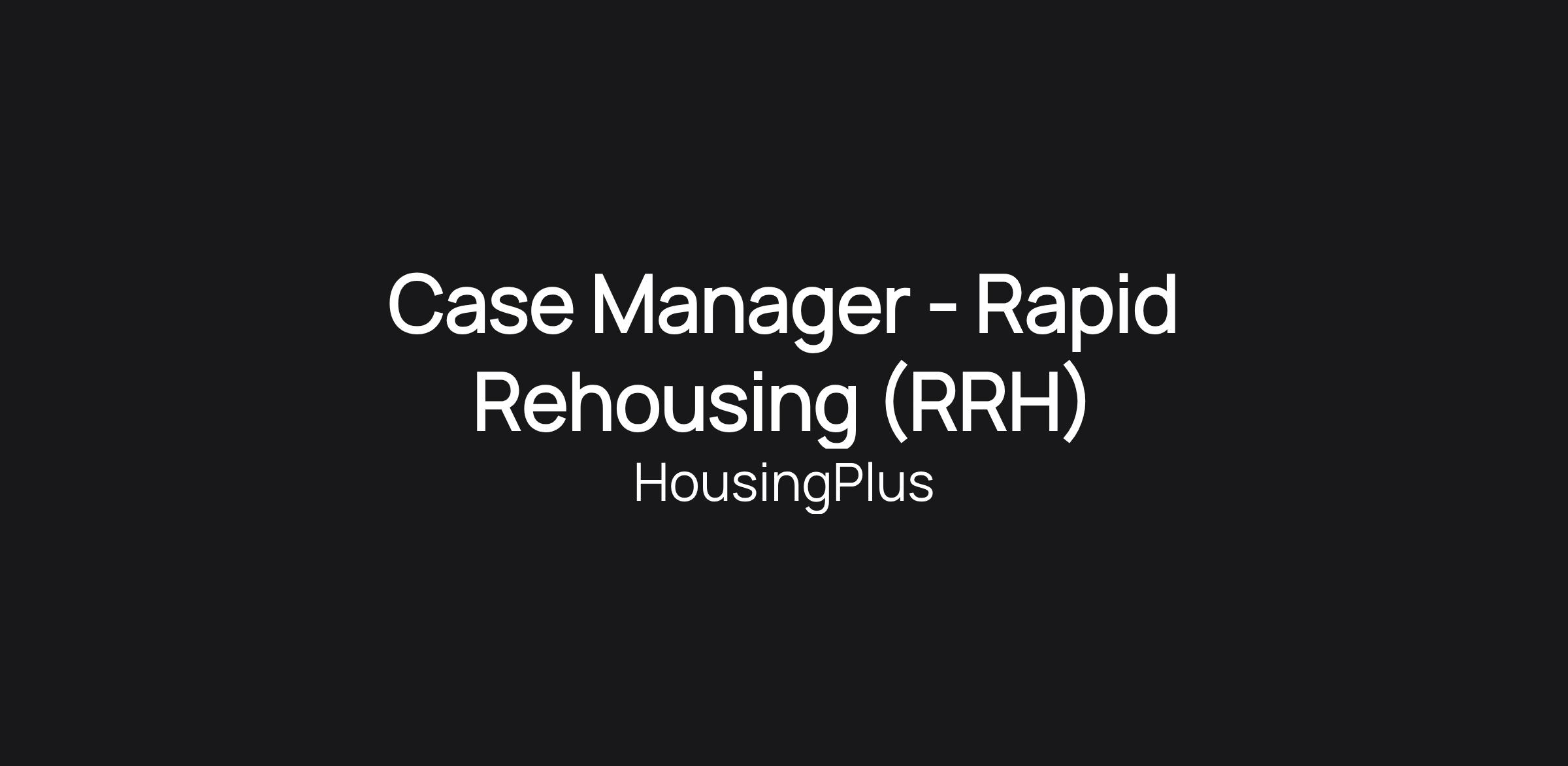 The Rapid Rehousing Case Manager is a key part of the Housing Plus RRH program. The case manager carries a caseload of families, individuals, or a combination of both, and will deliver services to support the goals of housing stability, family stabilization, independent living, and financial security.
