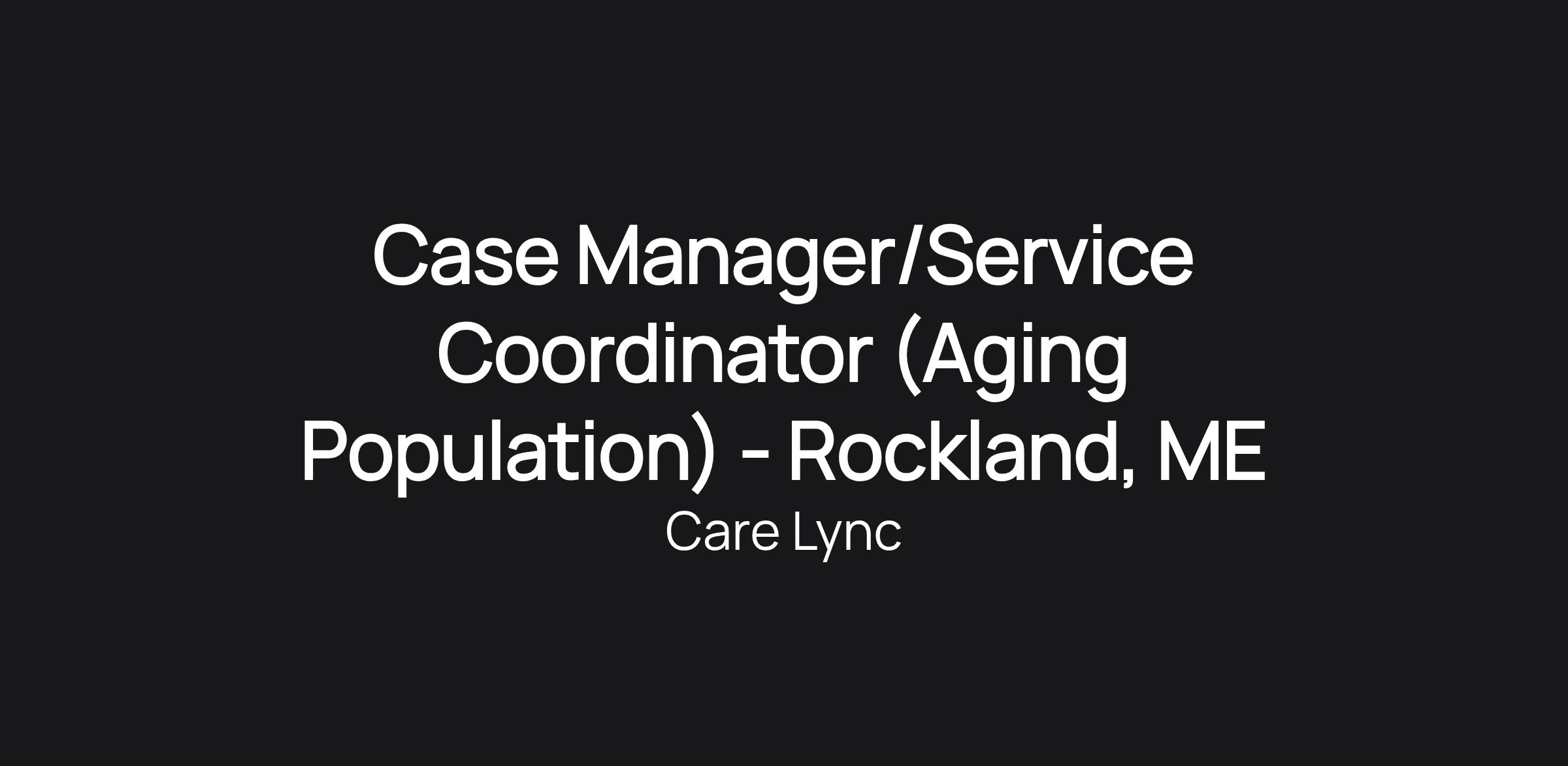 Case Manager/Service Coordinator (Aging Population) - Rockland, ME