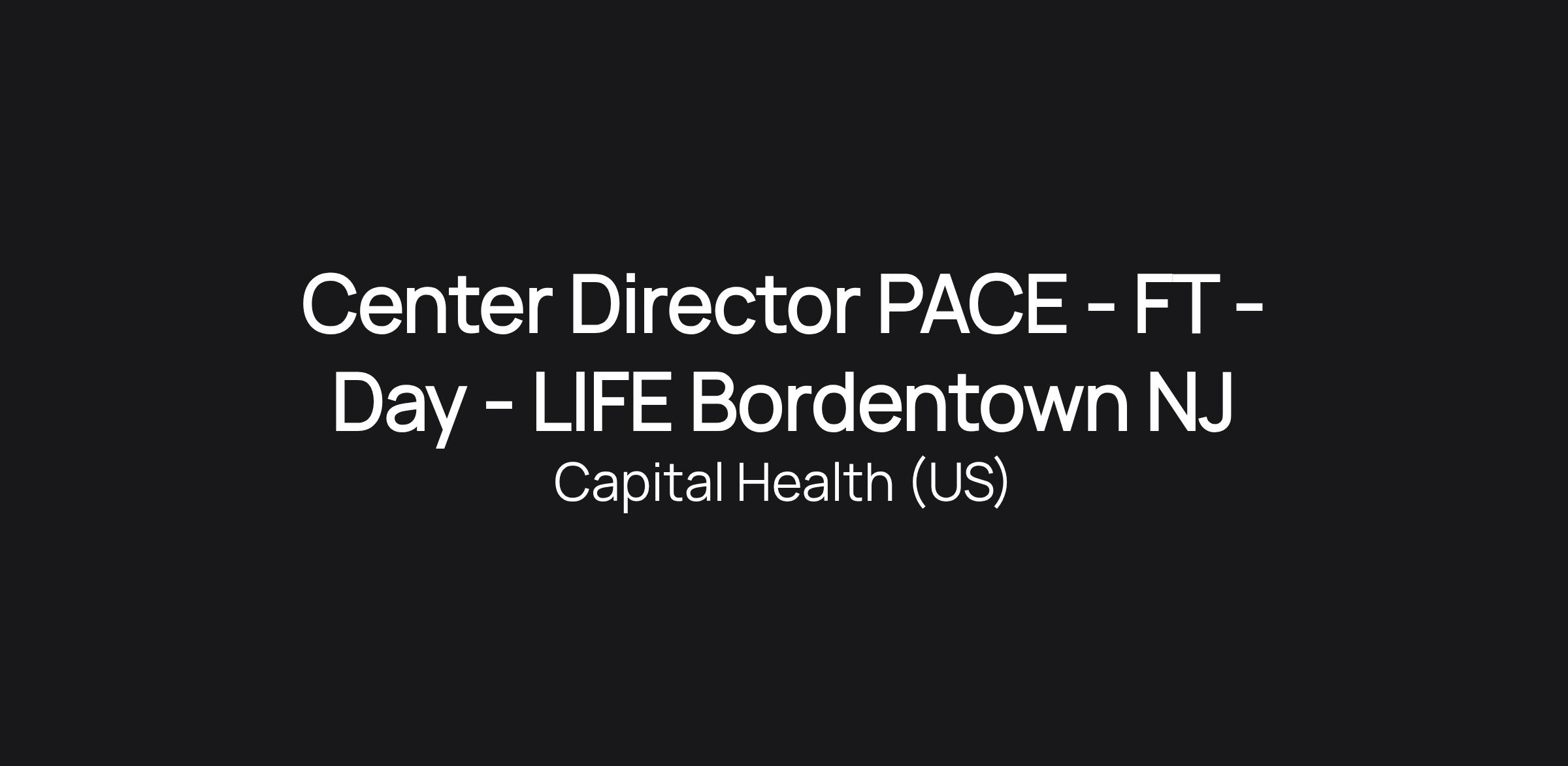Center Director PACE - FT - Day - LIFE Bordentown NJ