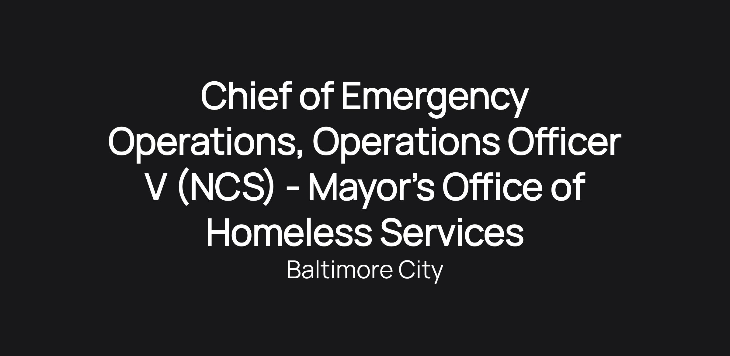 Chief of Emergency Operations, Operations Officer V (NCS) - Mayor's Office of Homeless Services