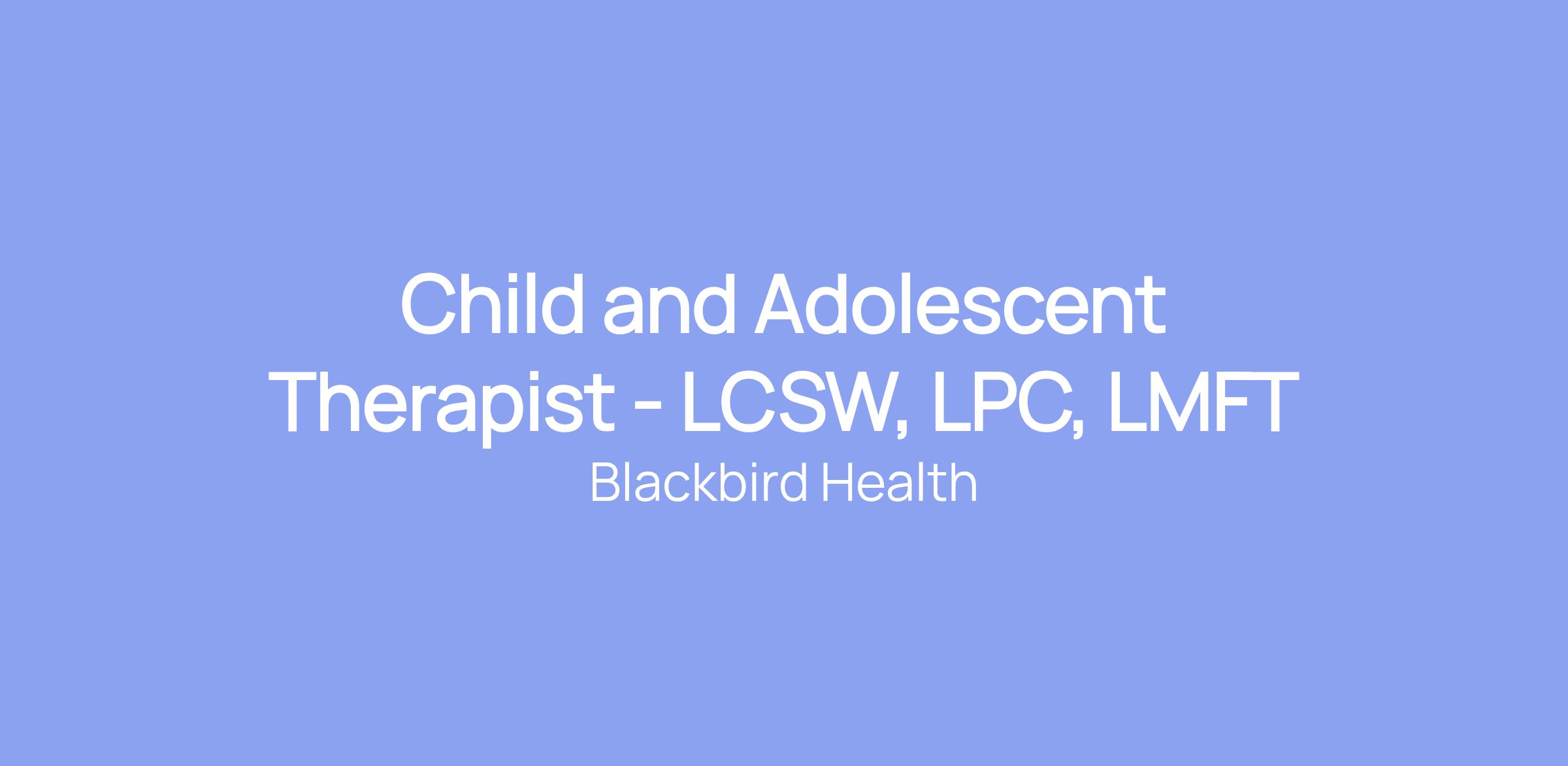 Child and Adolescent Therapist - LCSW, LPC, LMFT