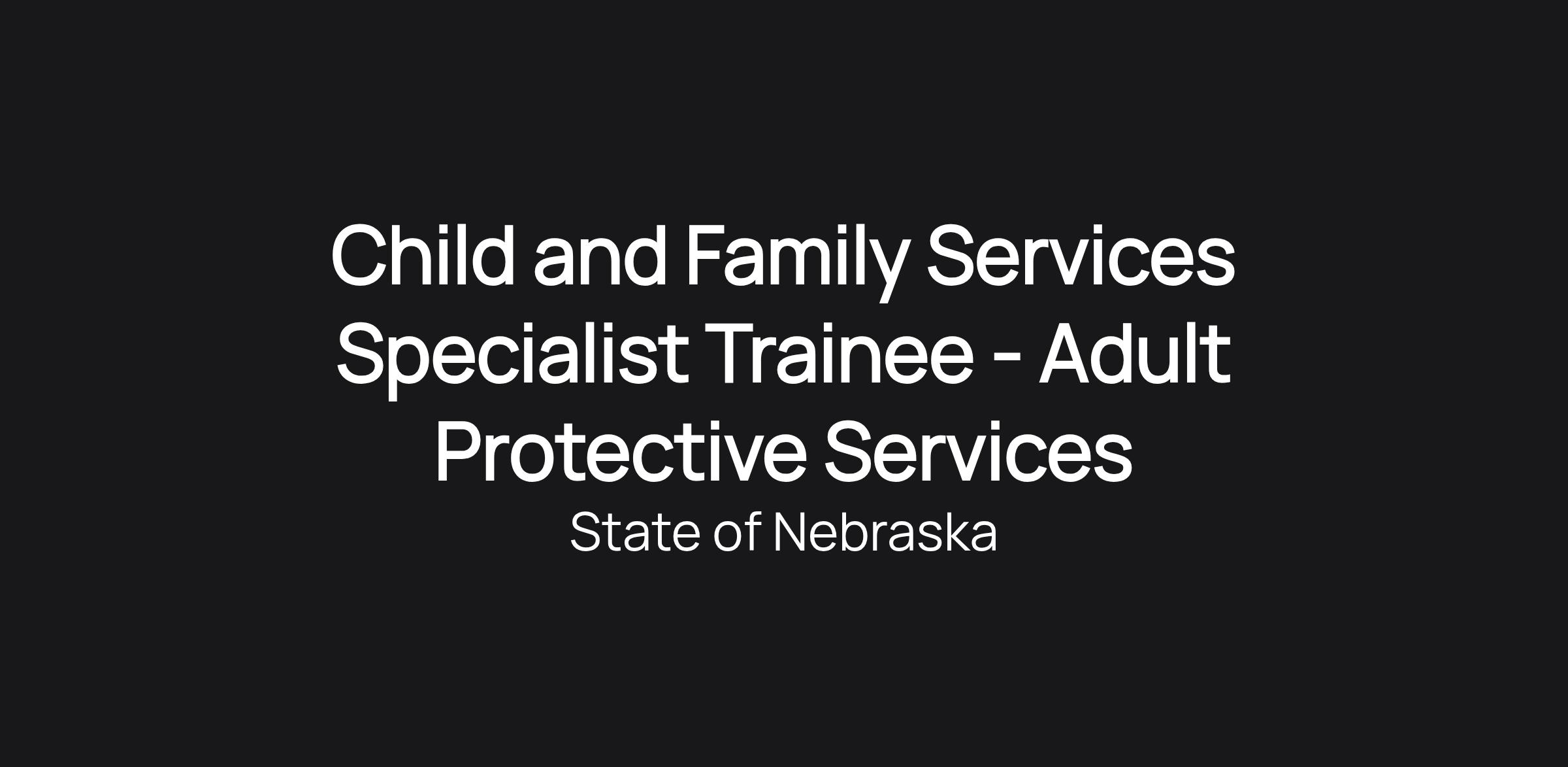 Child and Family Services Specialist Trainee - Adult Protective Services