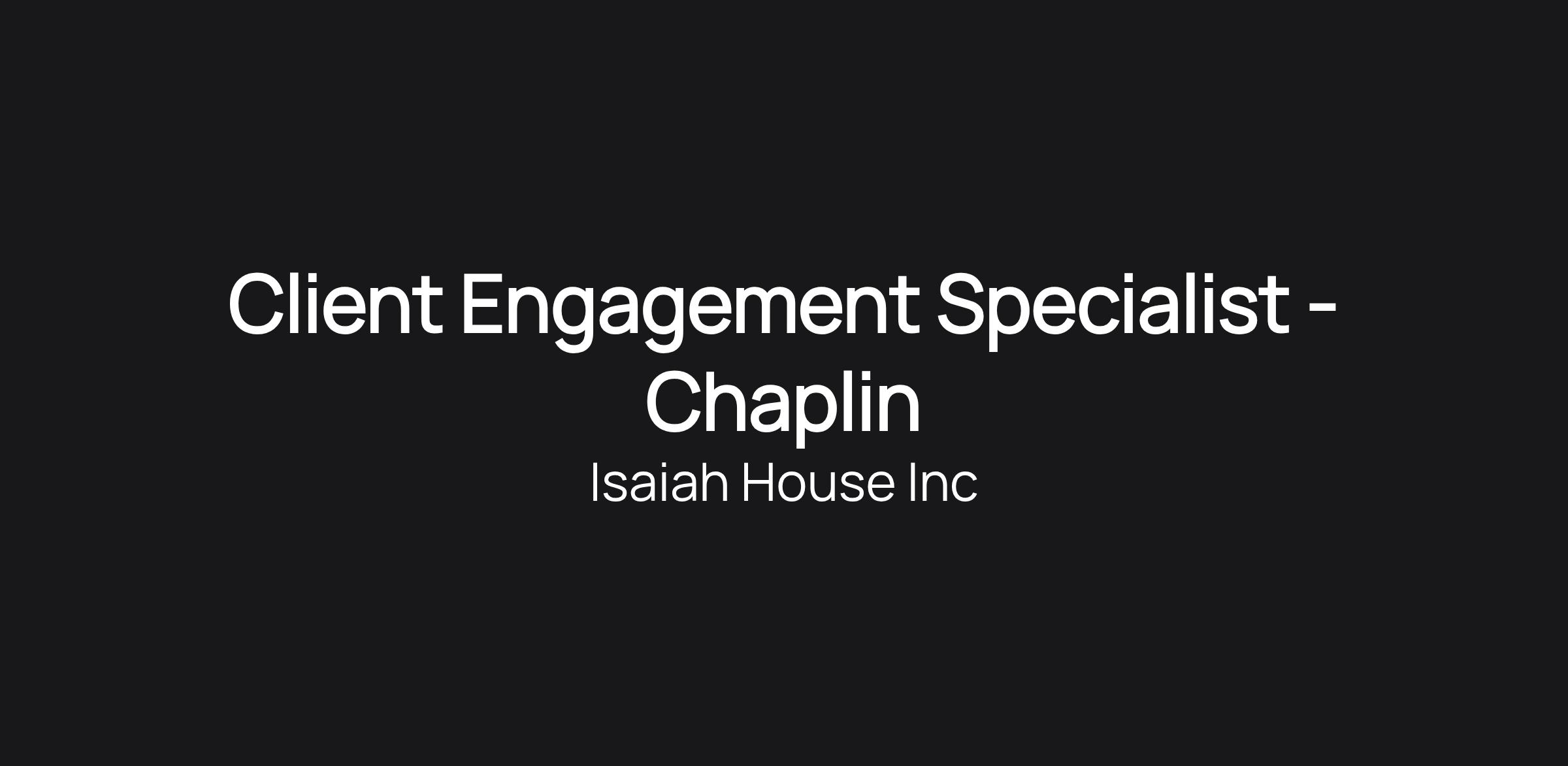 Client Engagement Specialist - Chaplin