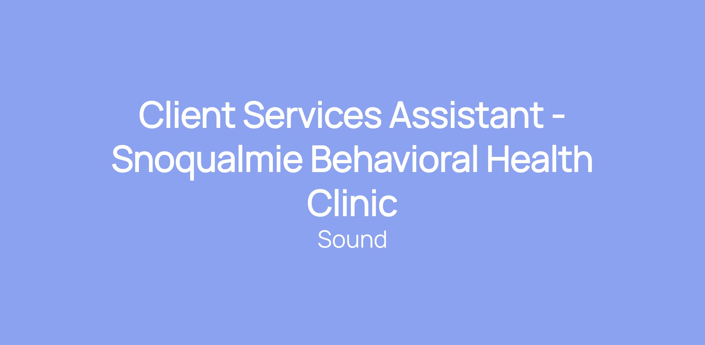 Client Services Assistant - Snoqualmie Behavioral Health Clinic