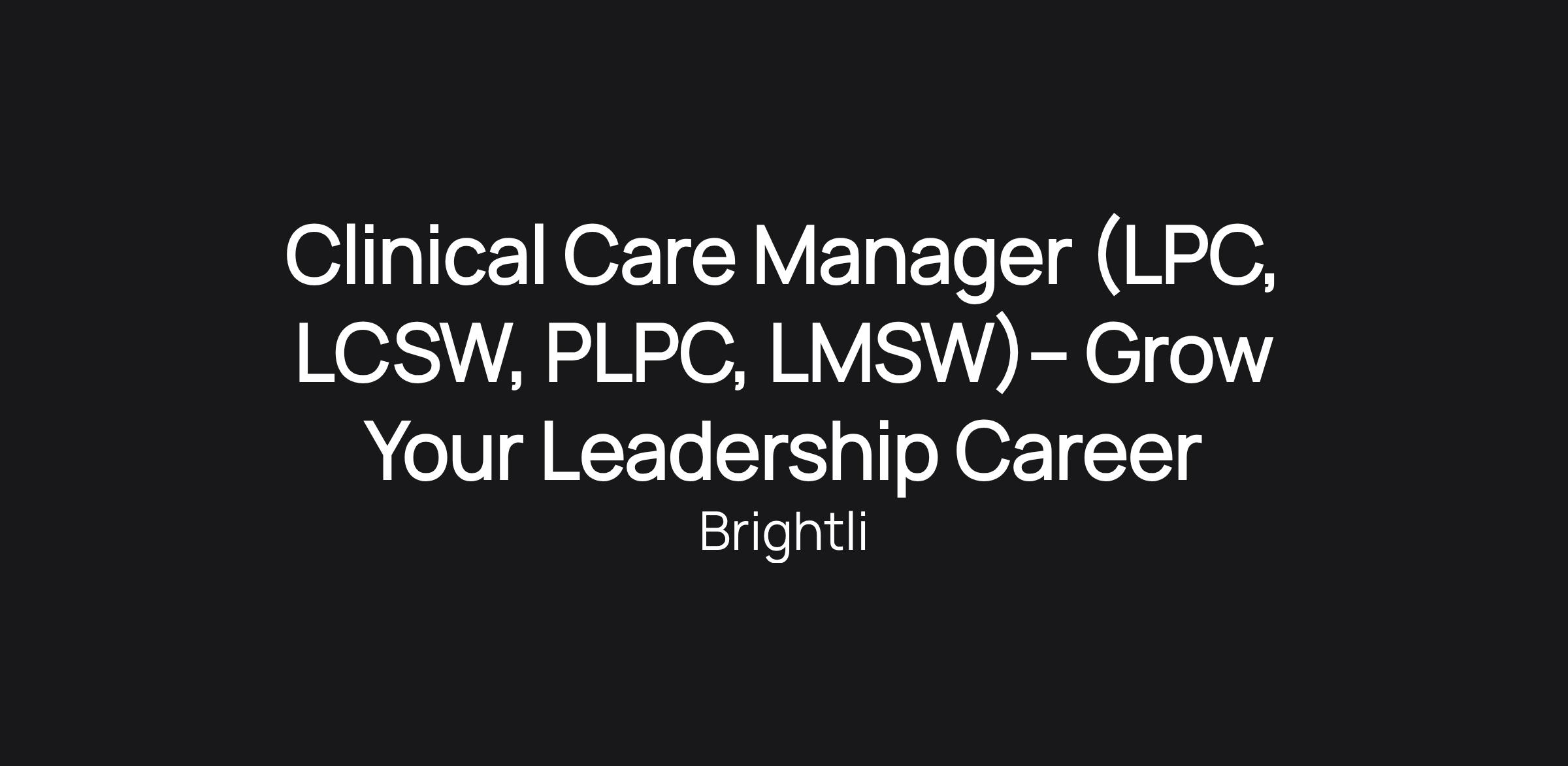 Clinical Care Manager (LPC, LCSW, PLPC, LMSW)– Grow Your Leadership Career