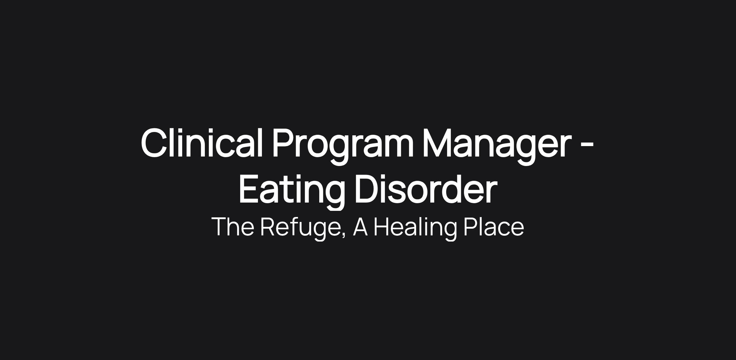 Clinical Program Manager - Eating Disorder