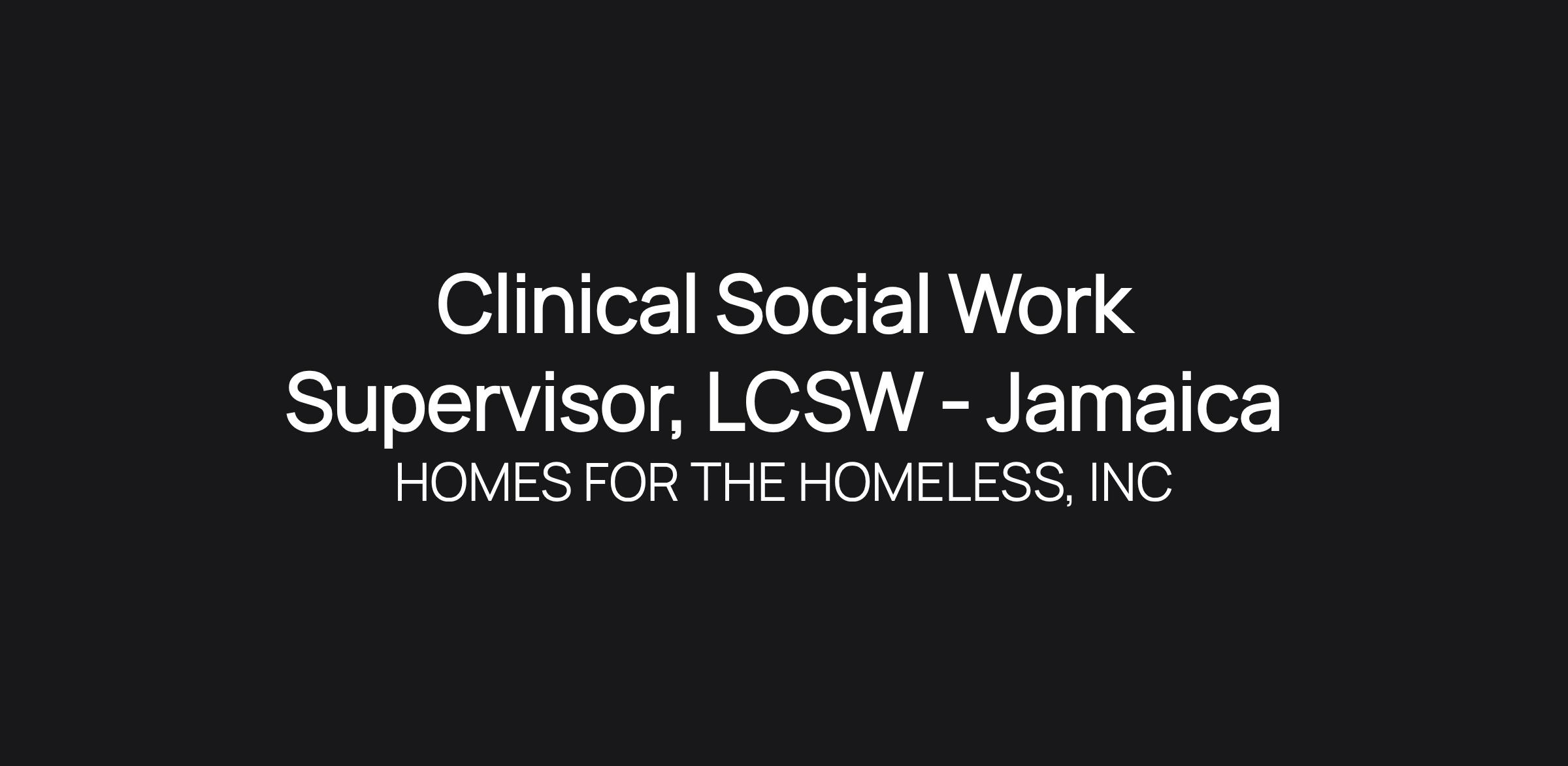 We are excited to invite a passionate and experienced Clinical Social Work Supervisor to join our team! Homes for the Homeless (HFH) is searching for an experienced Clinical Social Work Supervisor for our Families w/ Children facility in the Jamaica area of Queens, NY. As the Clinical Social Work Supervisor, you will play a pivotal role in our organization by providing expertise and advice for the successful operations for our family shelter. Our ideal candidate is an ambitious social work professional who has demonstrated experience helping create and sustain new programs and is looking to shape our growing program of Client Care Coordinators. Join us and be a part of an organization that values your contribution and cares deeply for the community we serve.