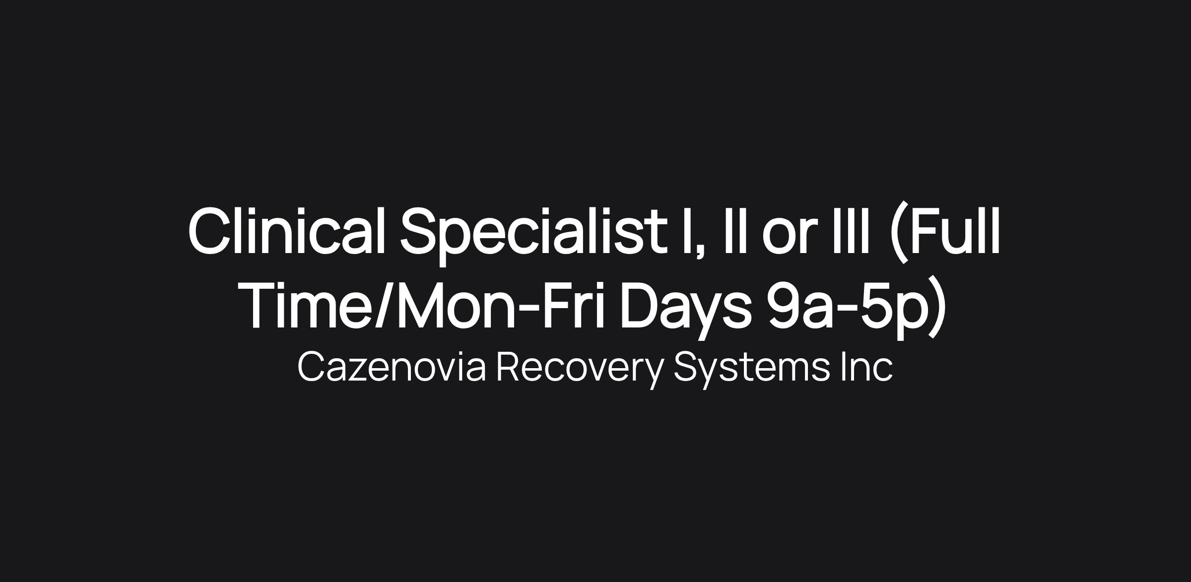 Clinical Specialist I, II or III (Full Time/Mon-Fri Days 9a-5p)