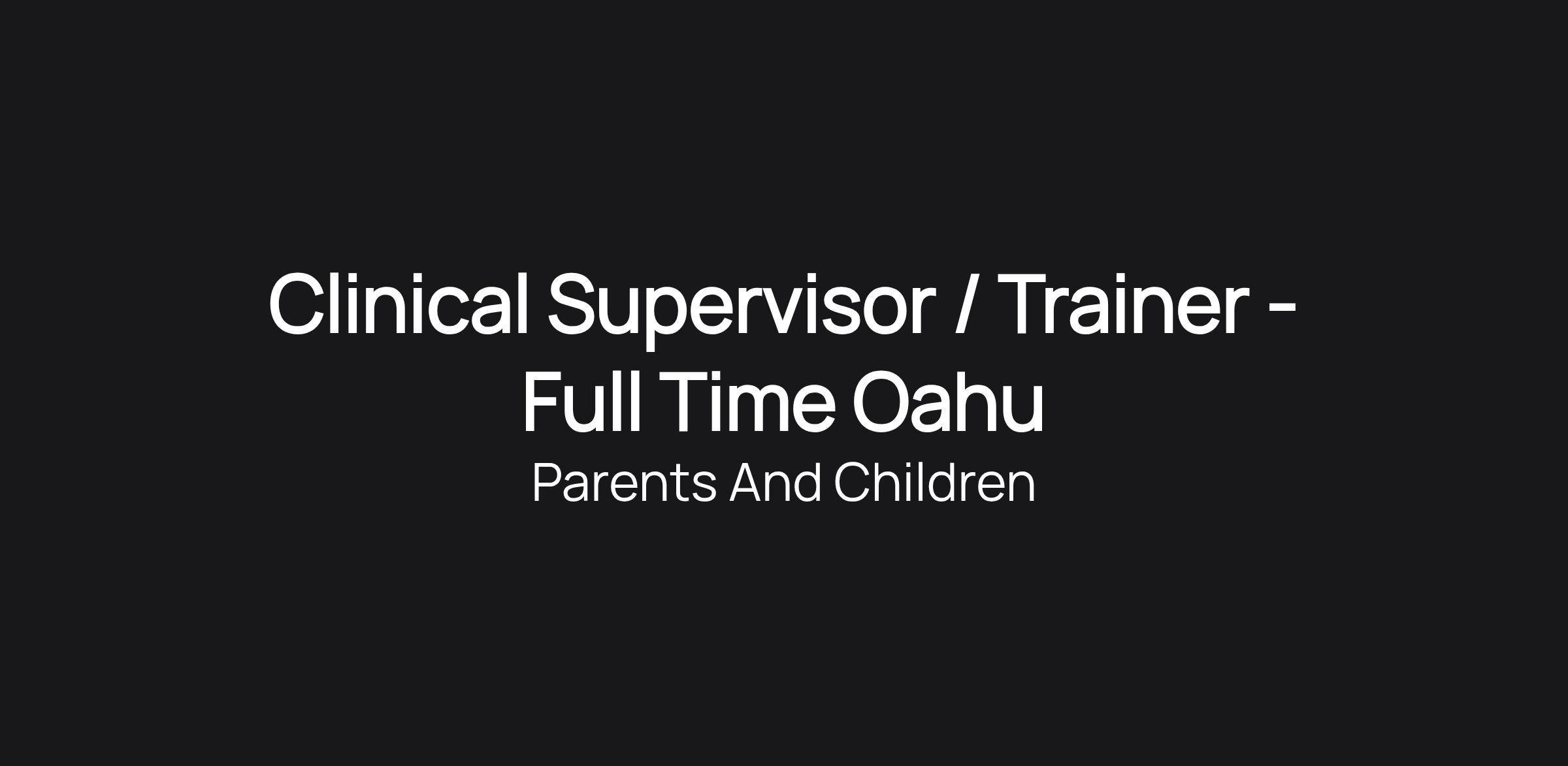 Clinical Supervisor / Trainer - Full Time Oahu