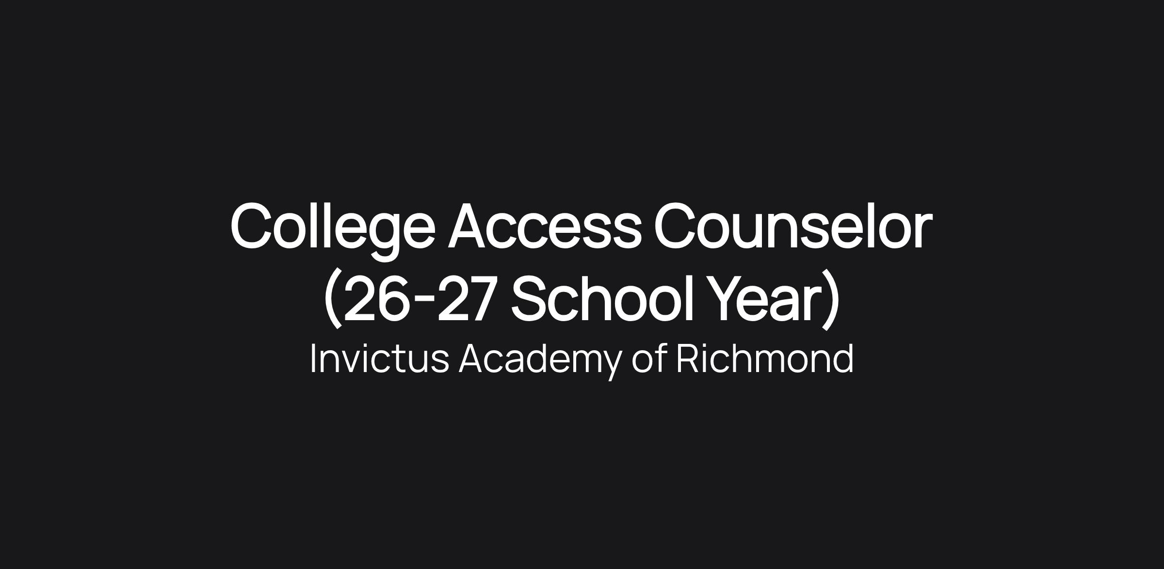 The College Access Counselor  is a visionary, equity-driven leader responsible for designing, implementing, and leading a comprehensive college and career readiness program that supports all Invictus students in achieving postsecondary success. This individual will build and sustain a college-going culture across the school, ensuring that every student has access to the guidance, resources, and opportunities needed to pursue college, career, and life goals with confidence and clarity.