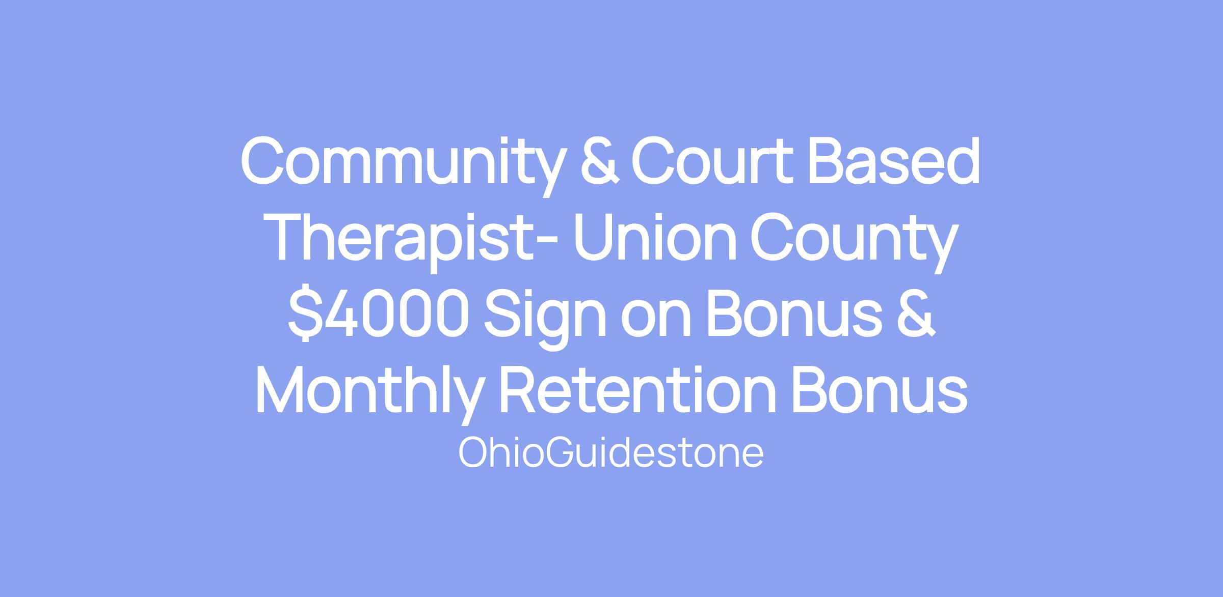 Community & Court Based Therapist- Union County $4000 Sign on Bonus & Monthly Retention Bonus