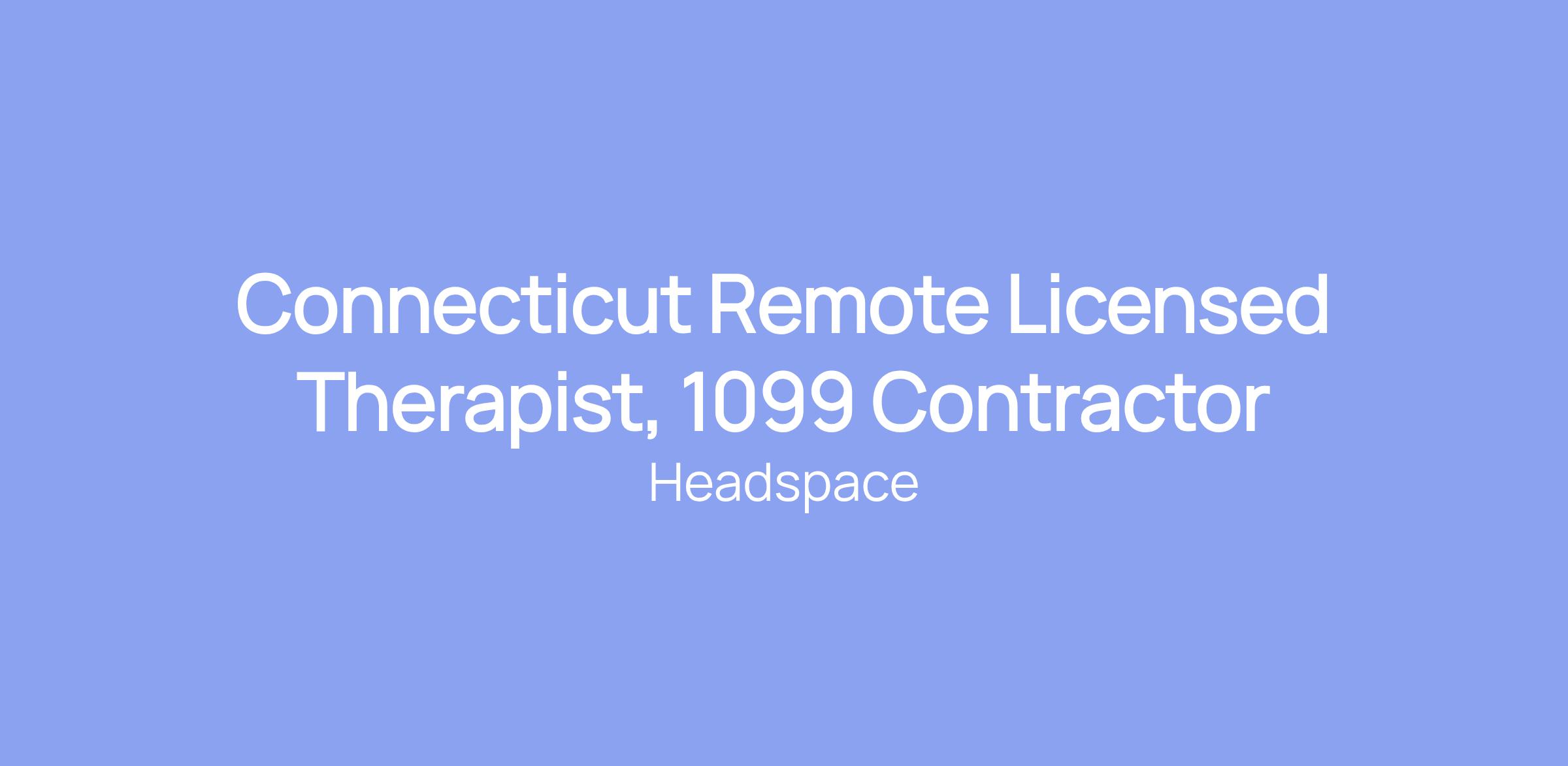 Connecticut Remote Licensed Therapist, 1099 Contractor