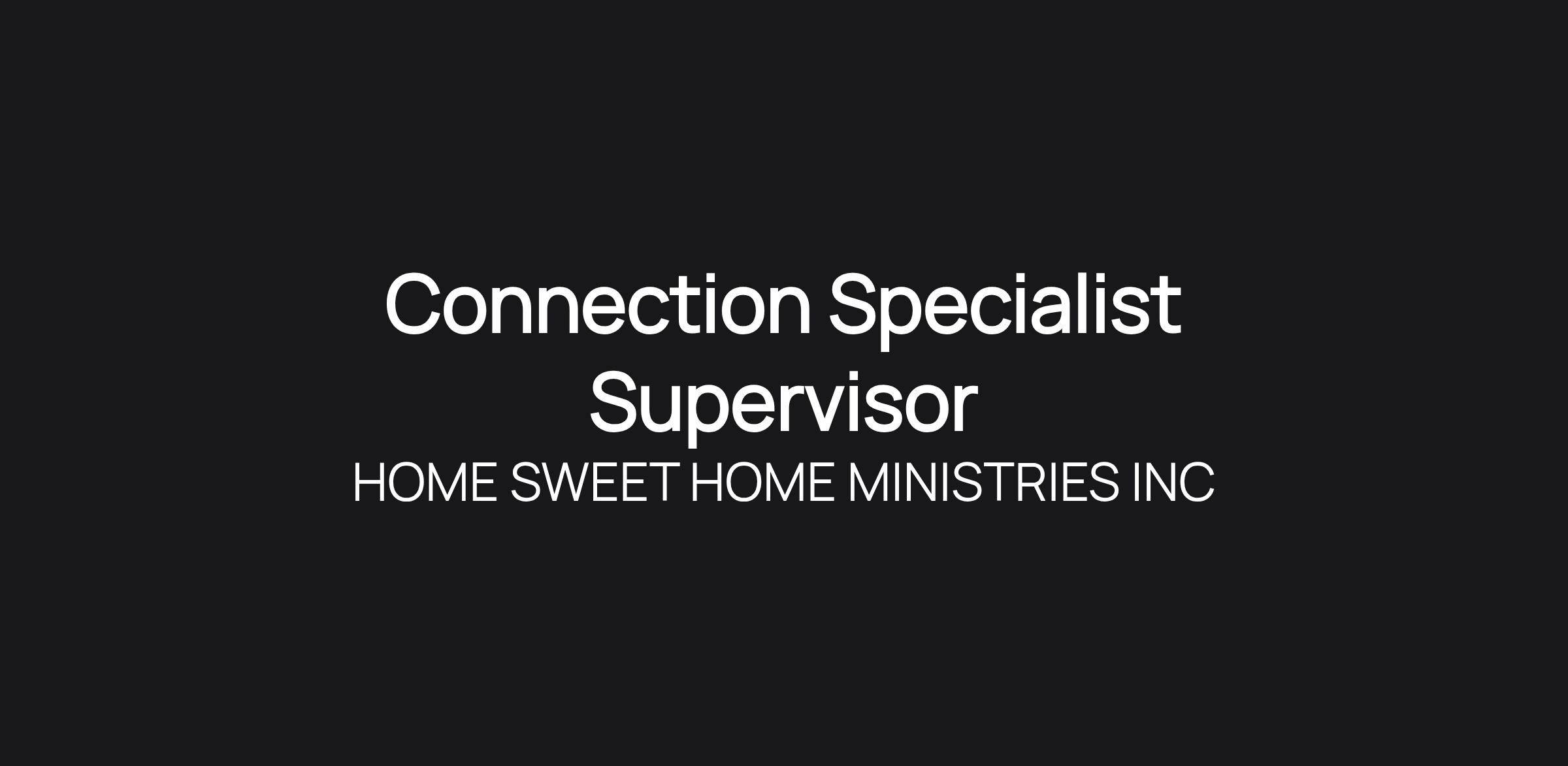 How You’ll Help Fulfill the HSHM Mission   The Connection Specialist Supervisor serves as the leader responsible for providing coordination and direct support to the Connection Specialist team, ensuring high-quality, trauma-informed services for individuals and families served by Home Sweet Home Ministries. This role oversees staff supervision and development, guides client assessment and intake processes, and supports the delivery of comprehensive services that promote stability and life transformation. Through effective team leadership, client engagement, and cross-functional collaboration, the Supervisor ensures consistent, compassionate care aligned with the organization’s mission and values.