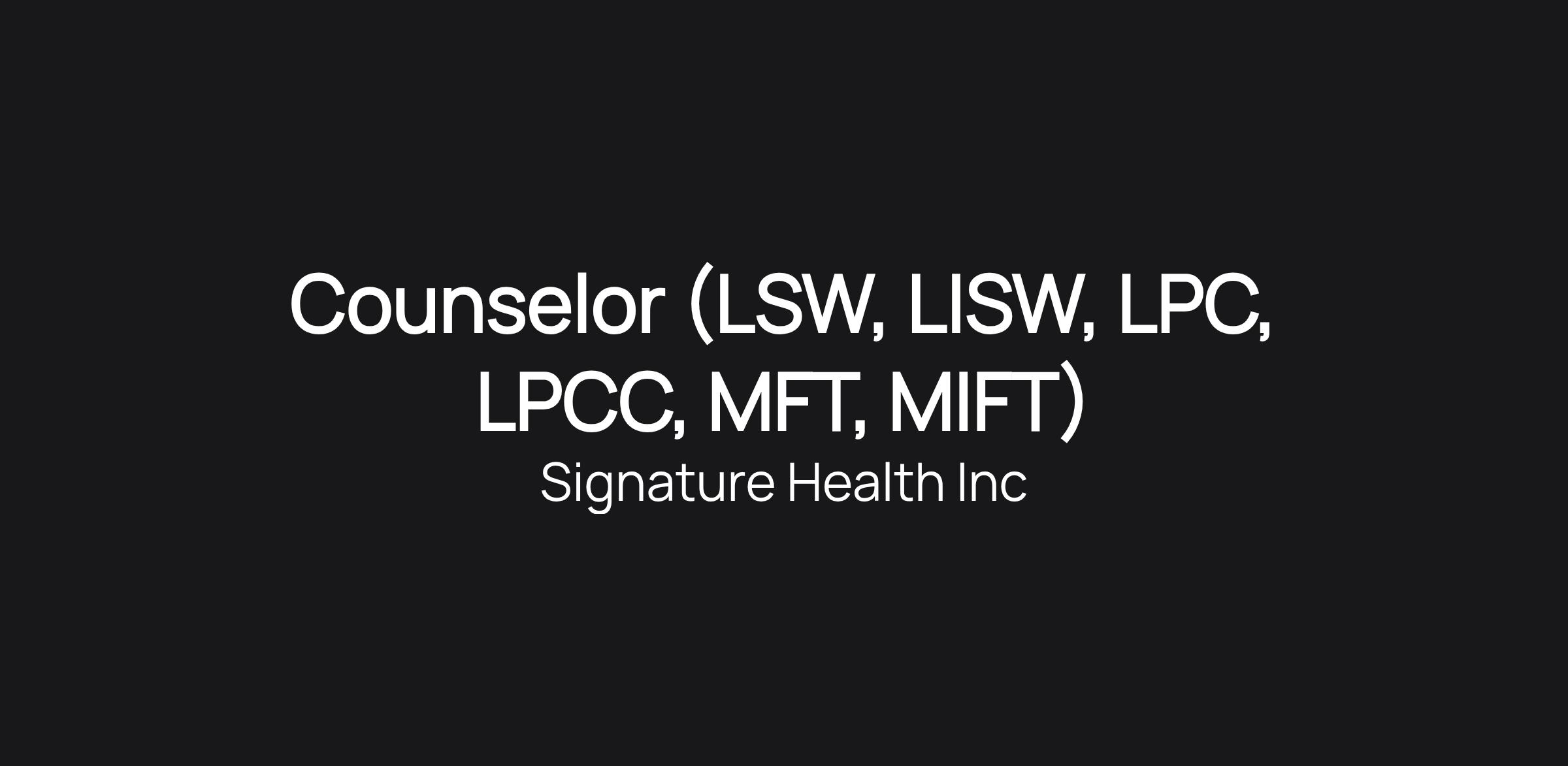 Counselor (LSW, LISW, LPC, LPCC, MFT, MIFT)